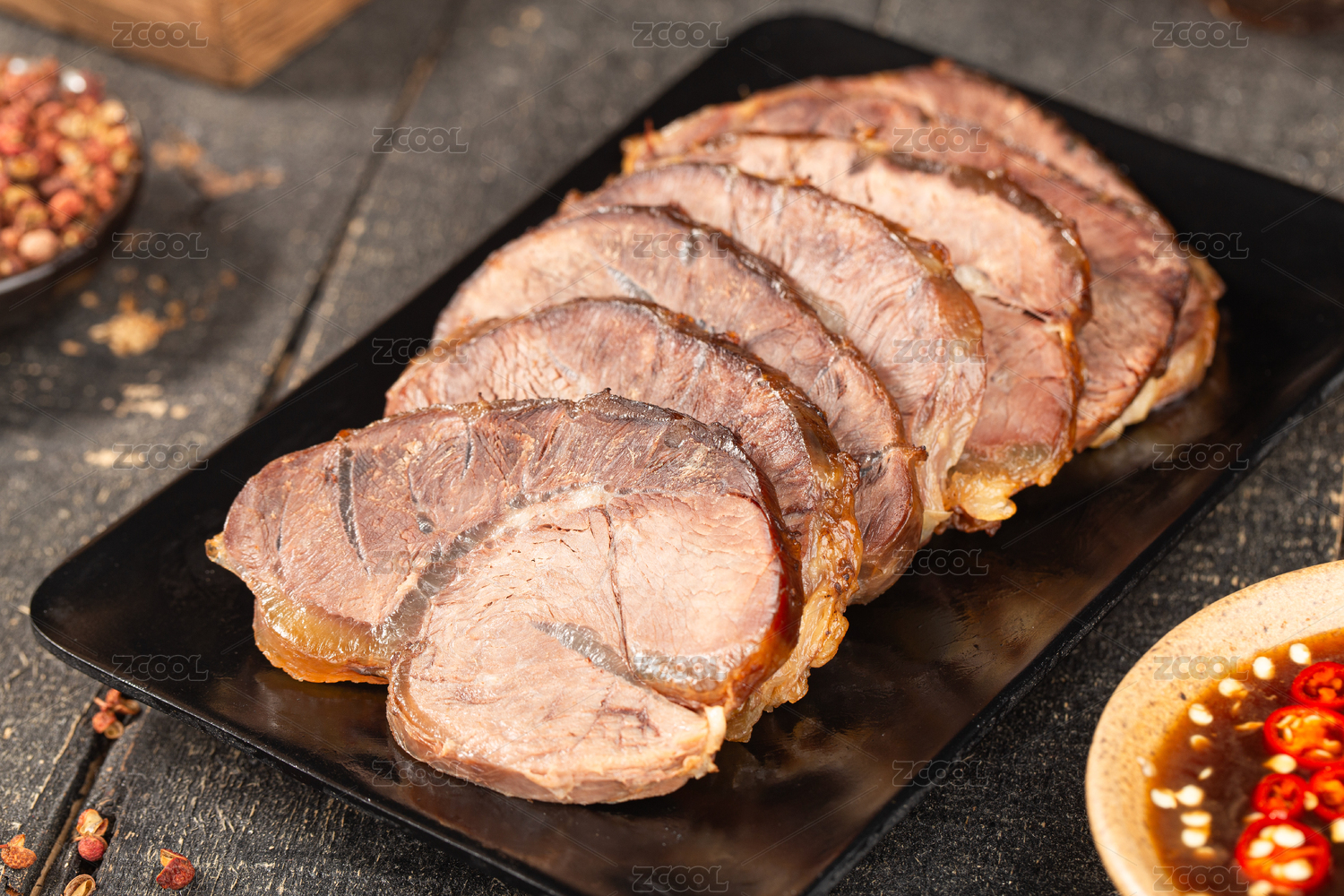 酱牛肉酱肉特写黑色背景