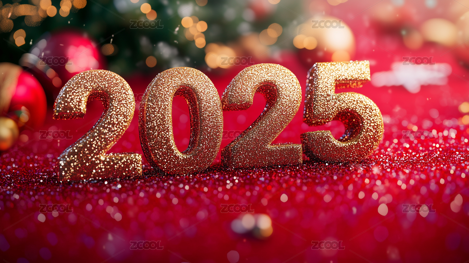3D立体红色洒金数字2025