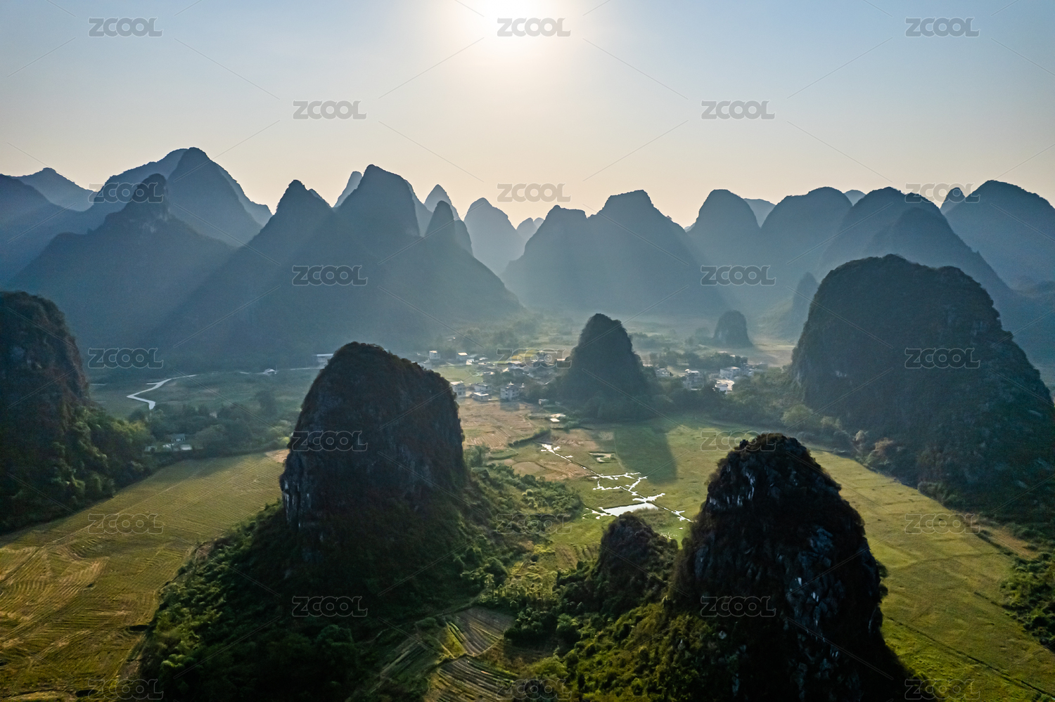 桂林山水田心村状元桥农田日出喀斯特地貌