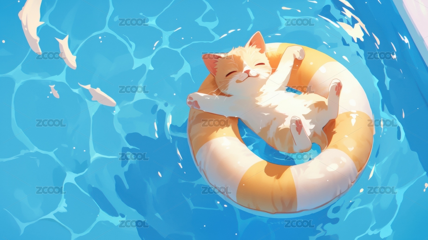 雪糕,夏天,游泳圈,游泳池,日光,水,户外,快乐,吃,明亮