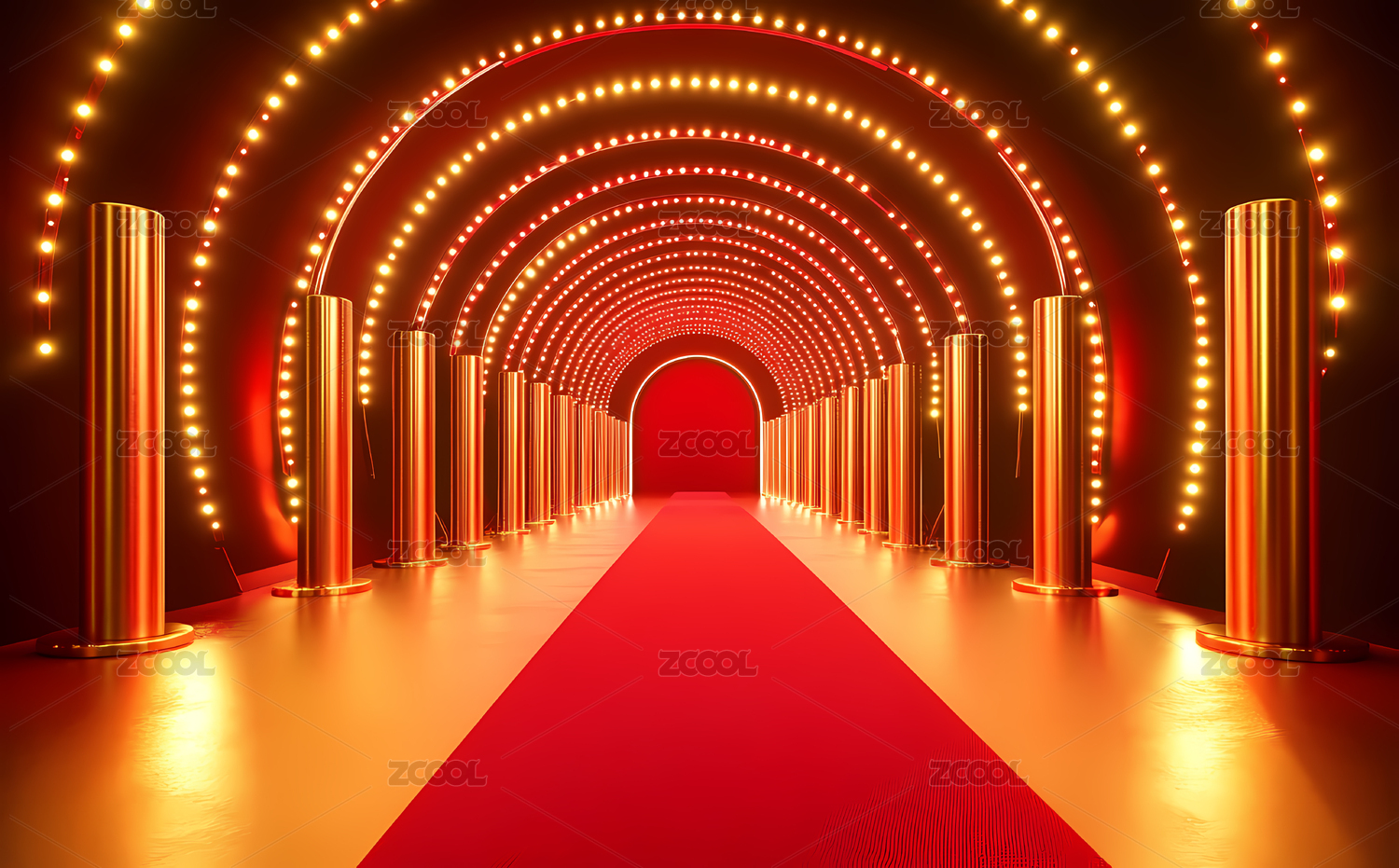 金色光影下的红毯舞台布景