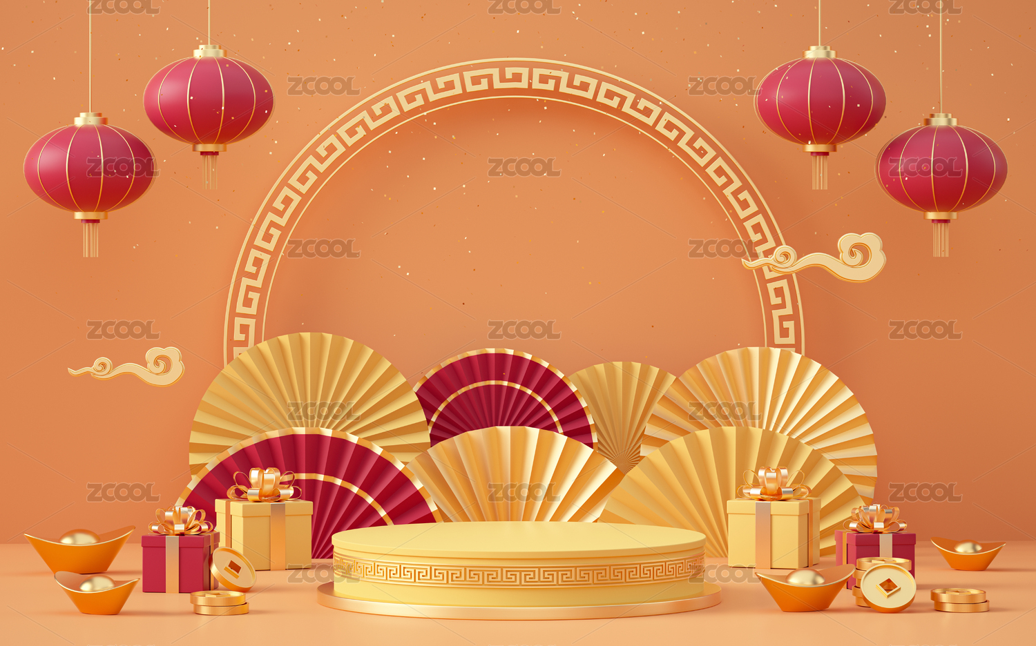 产品展台,传统,古典风格,背景,舞台,三维图形,中国文化,新年,扇子,春节