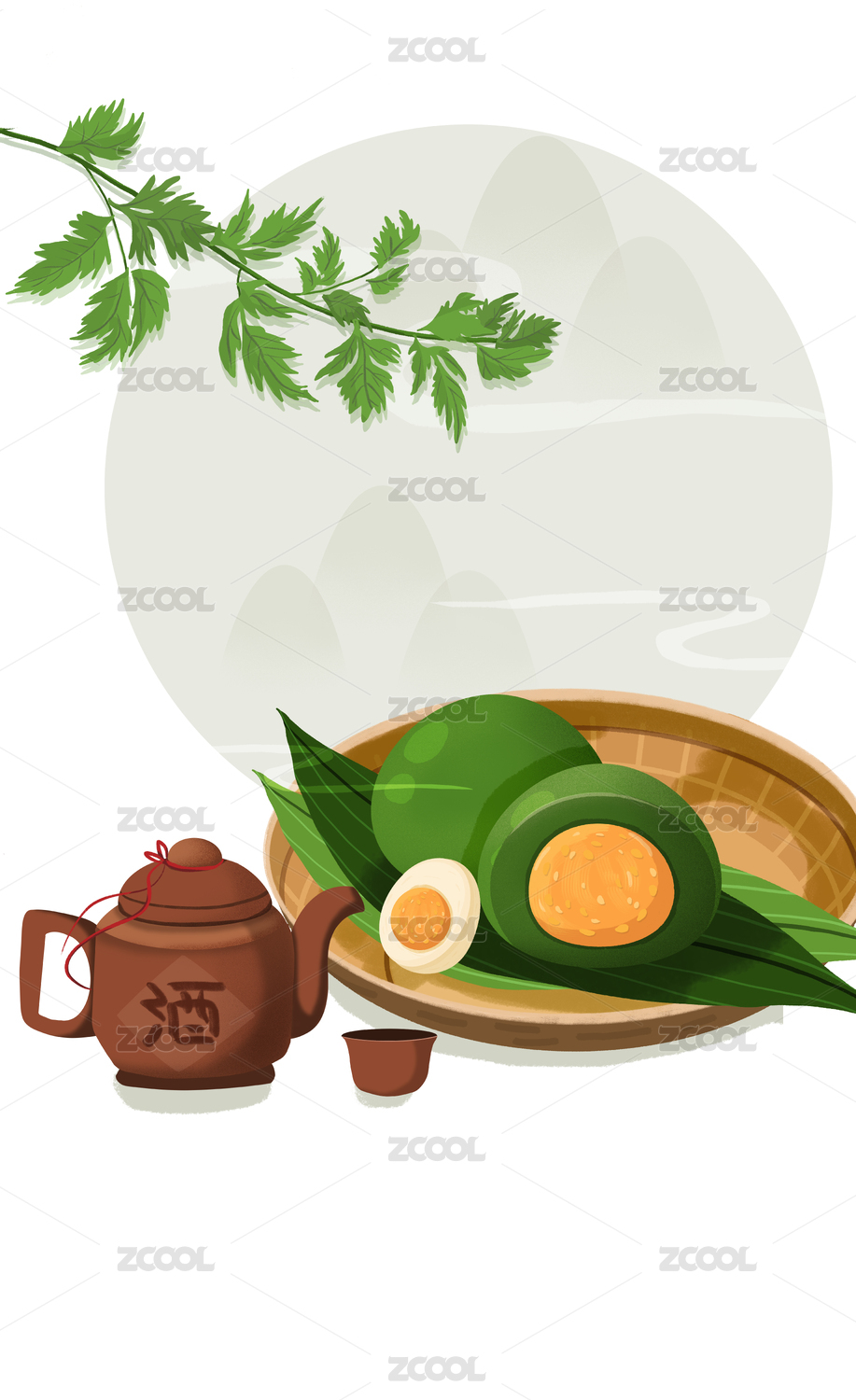 端午节,粽子,酒,插画,扁平风,食物,美食,咸蛋,竹篮,HECDBF2020