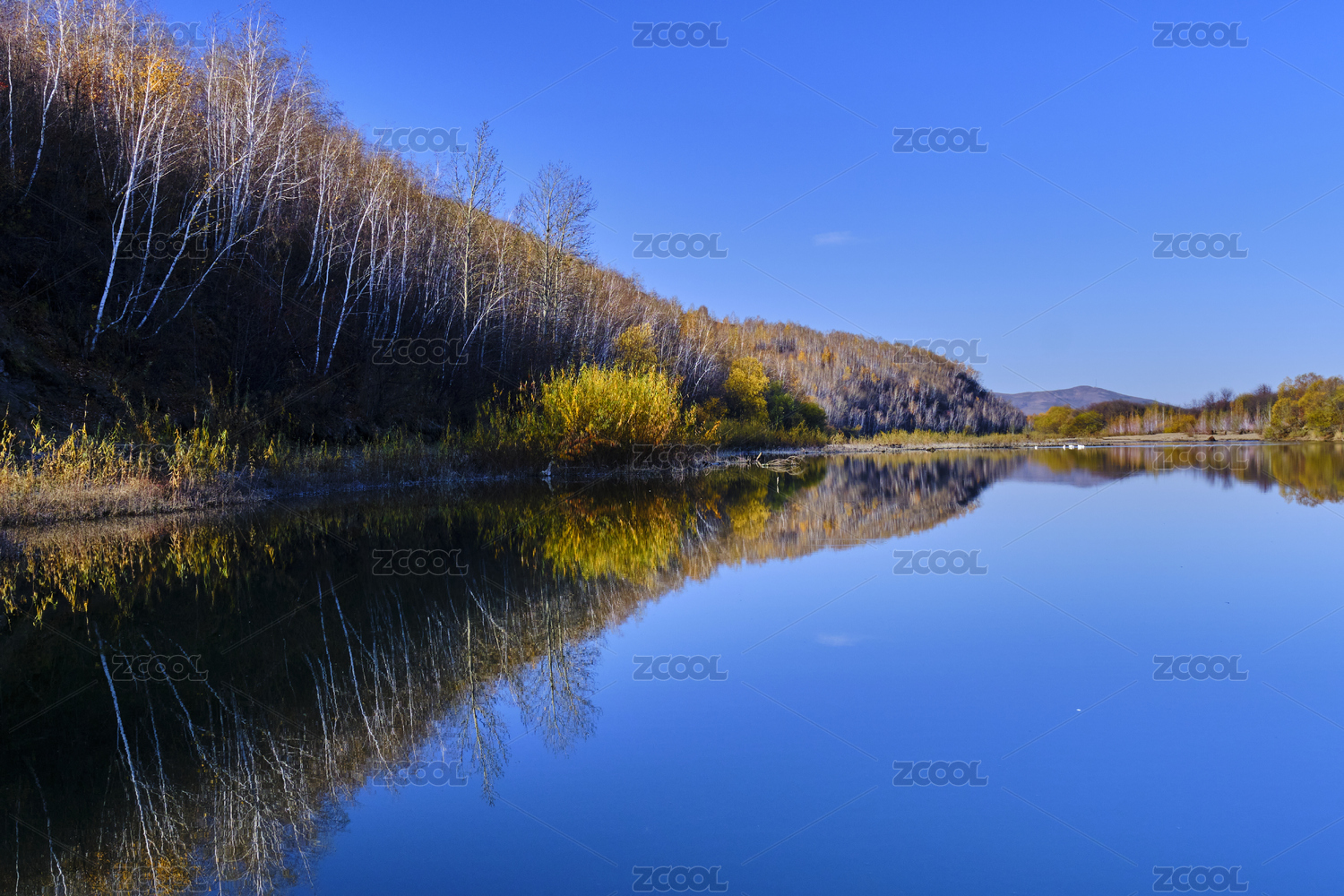 中国内蒙古额尔古纳湿地公园树林秋景长图