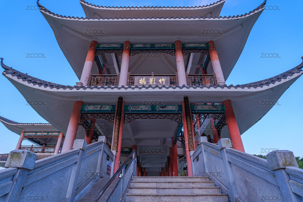 广西南宁狮山公园竹影桥中式传统亭台楼阁