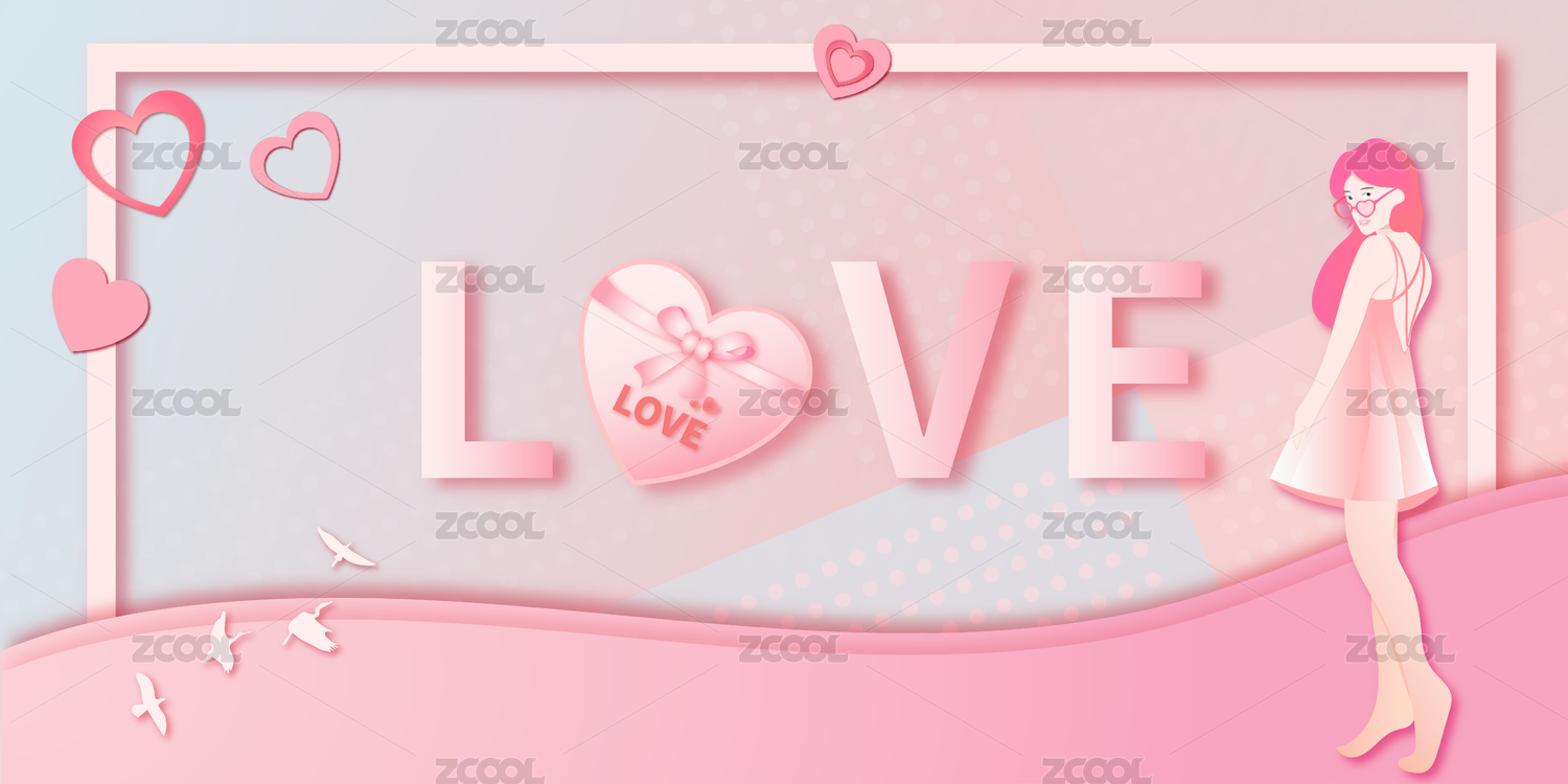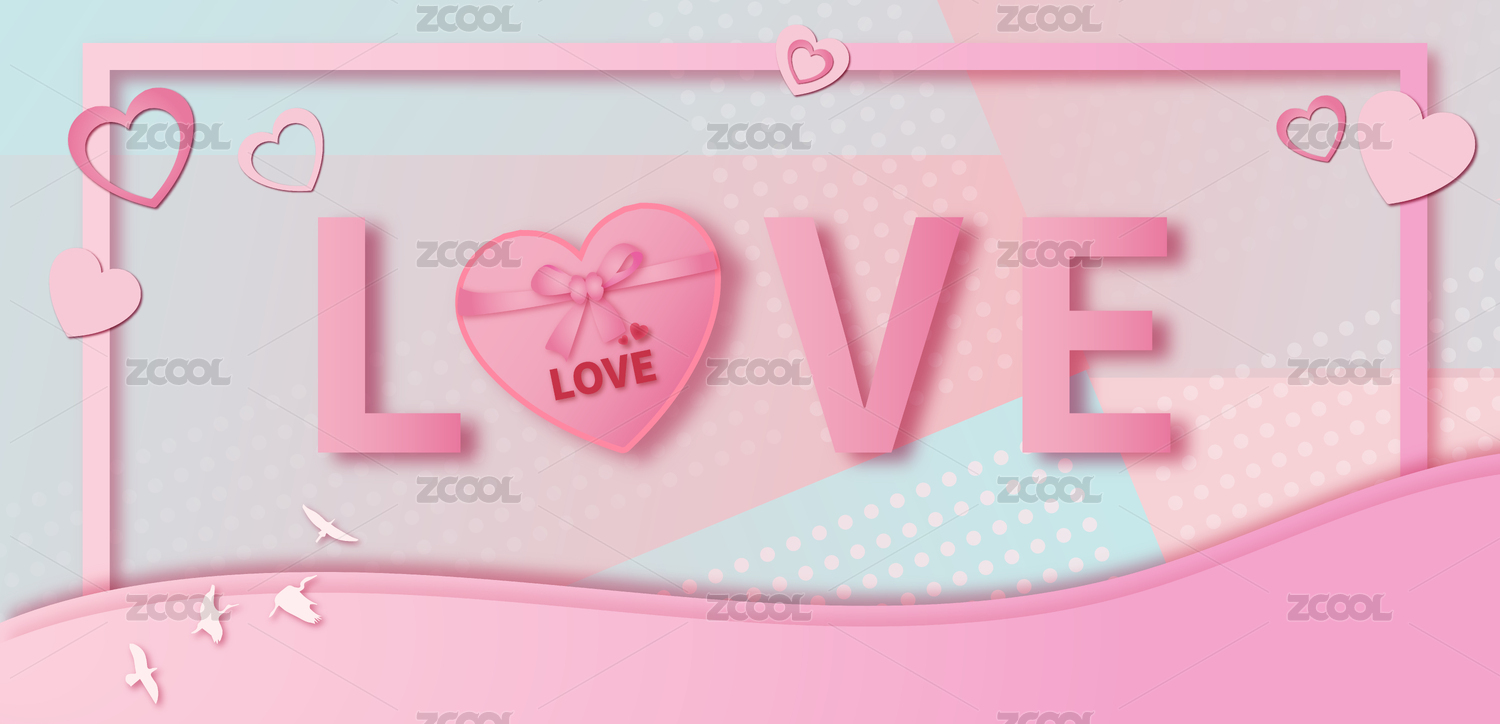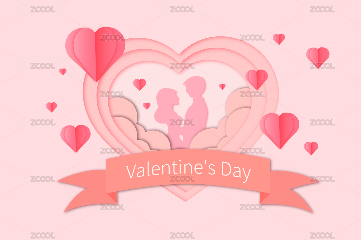 浪漫情人节促销活动剪纸风展板插画粉色背景