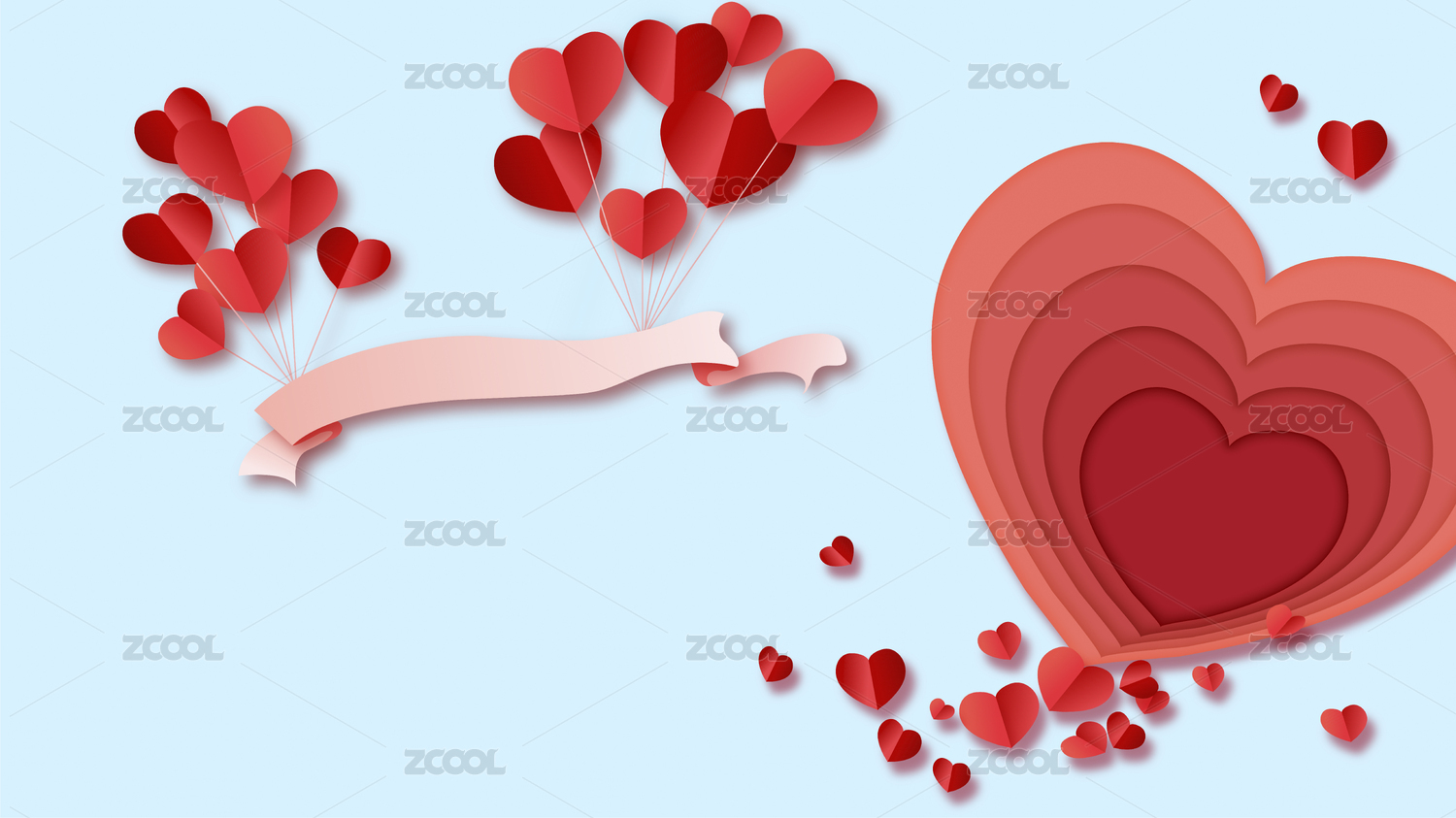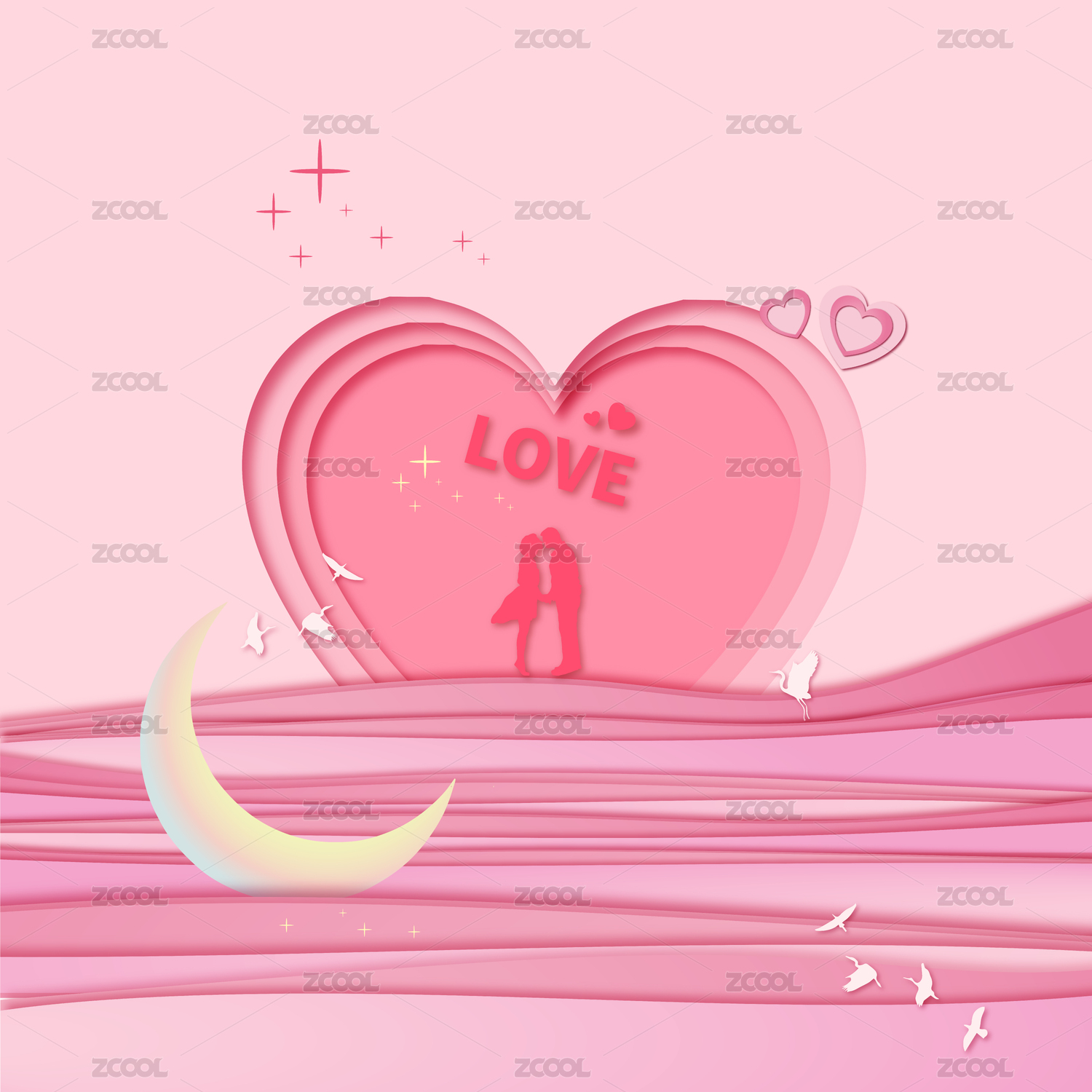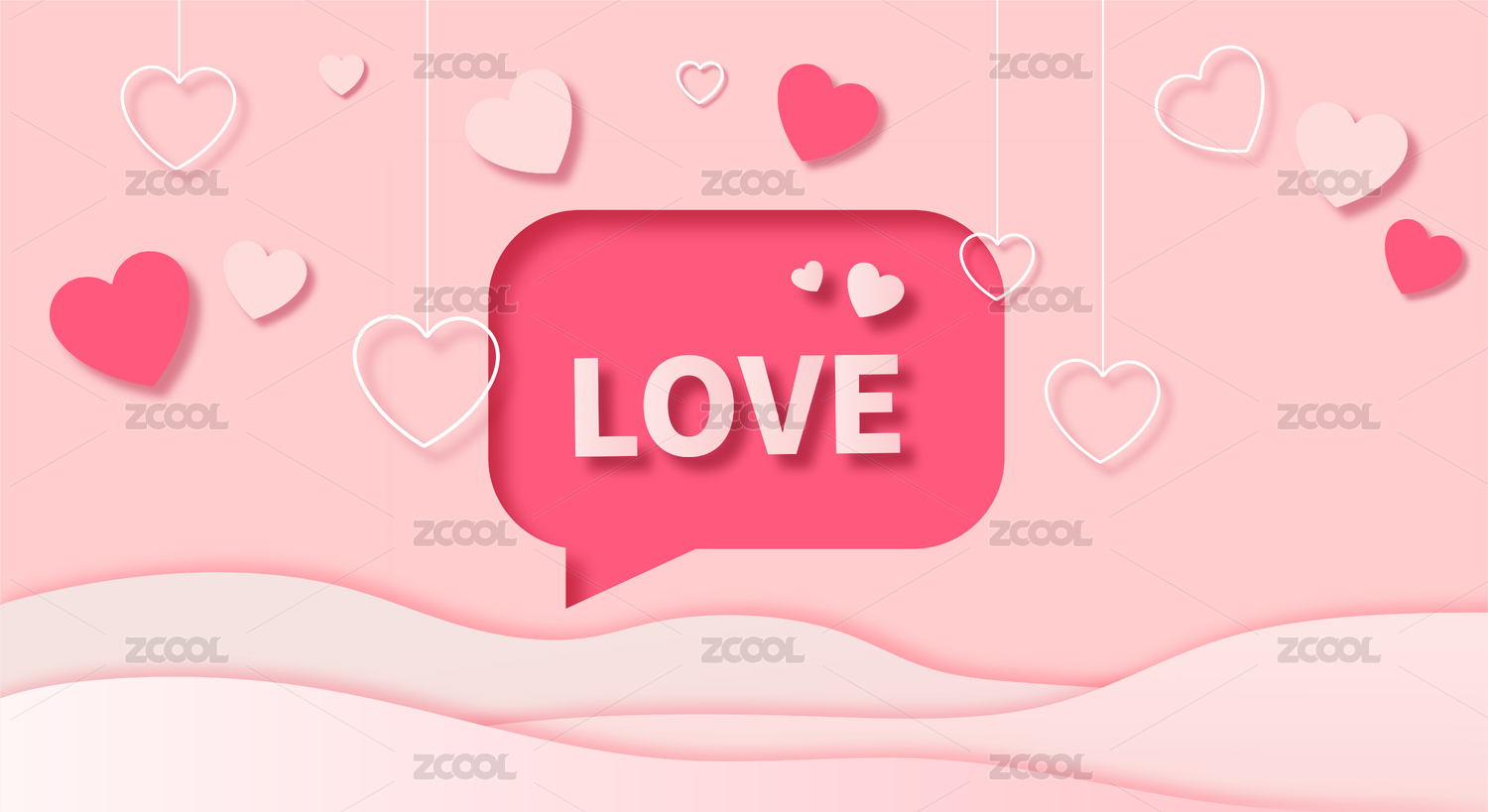 浪漫情人节促销活动剪纸风展板插画粉色背景