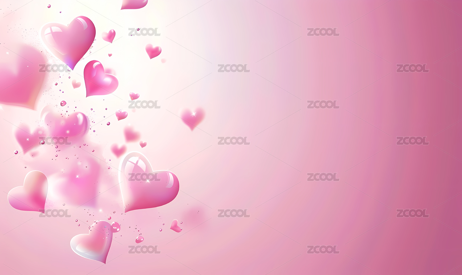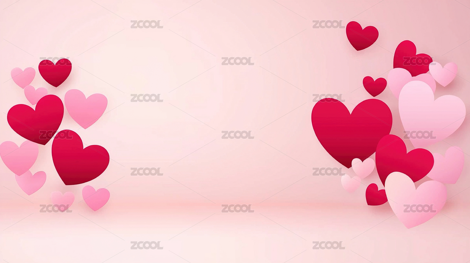 粉红色剪纸与粉红色立体心形竖构图矢量插画背景