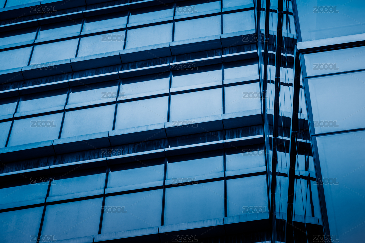 特写玻璃建筑立面在上海,china.blue色调图像。