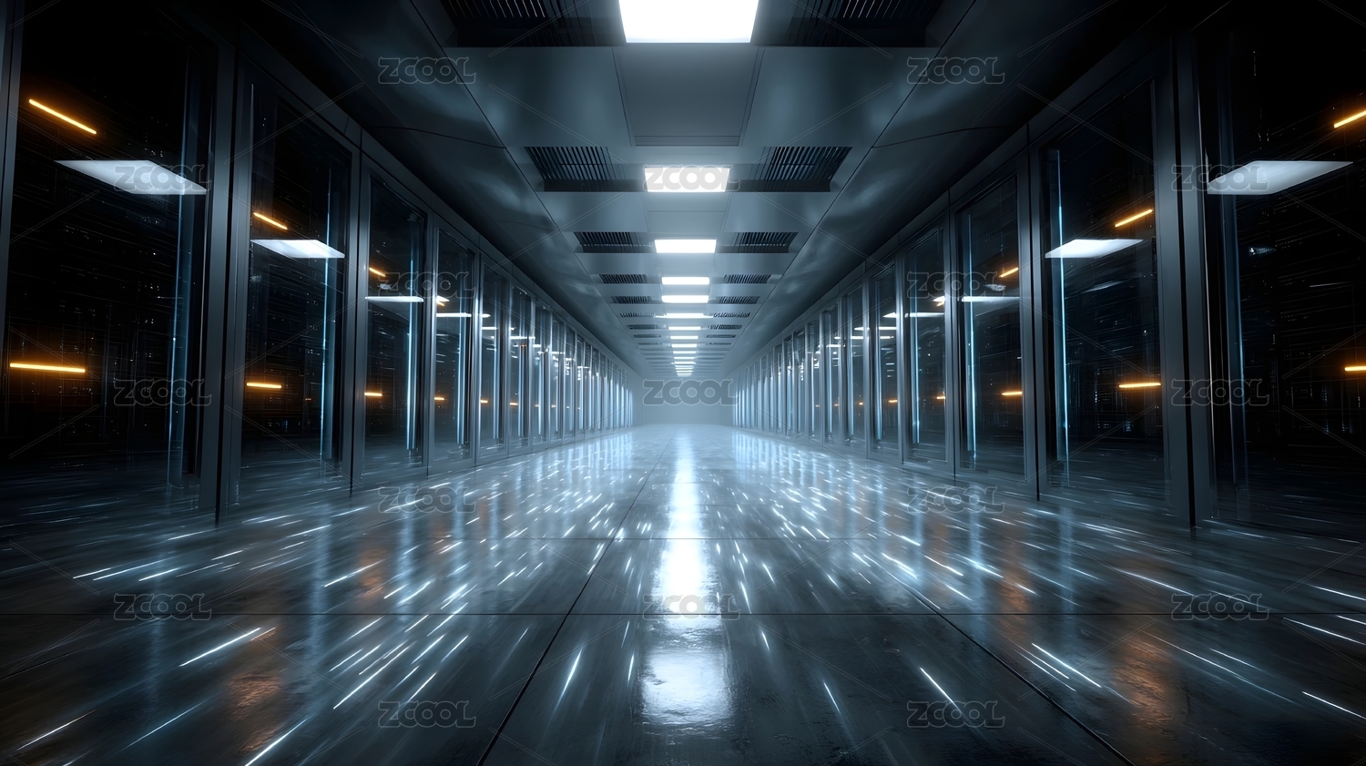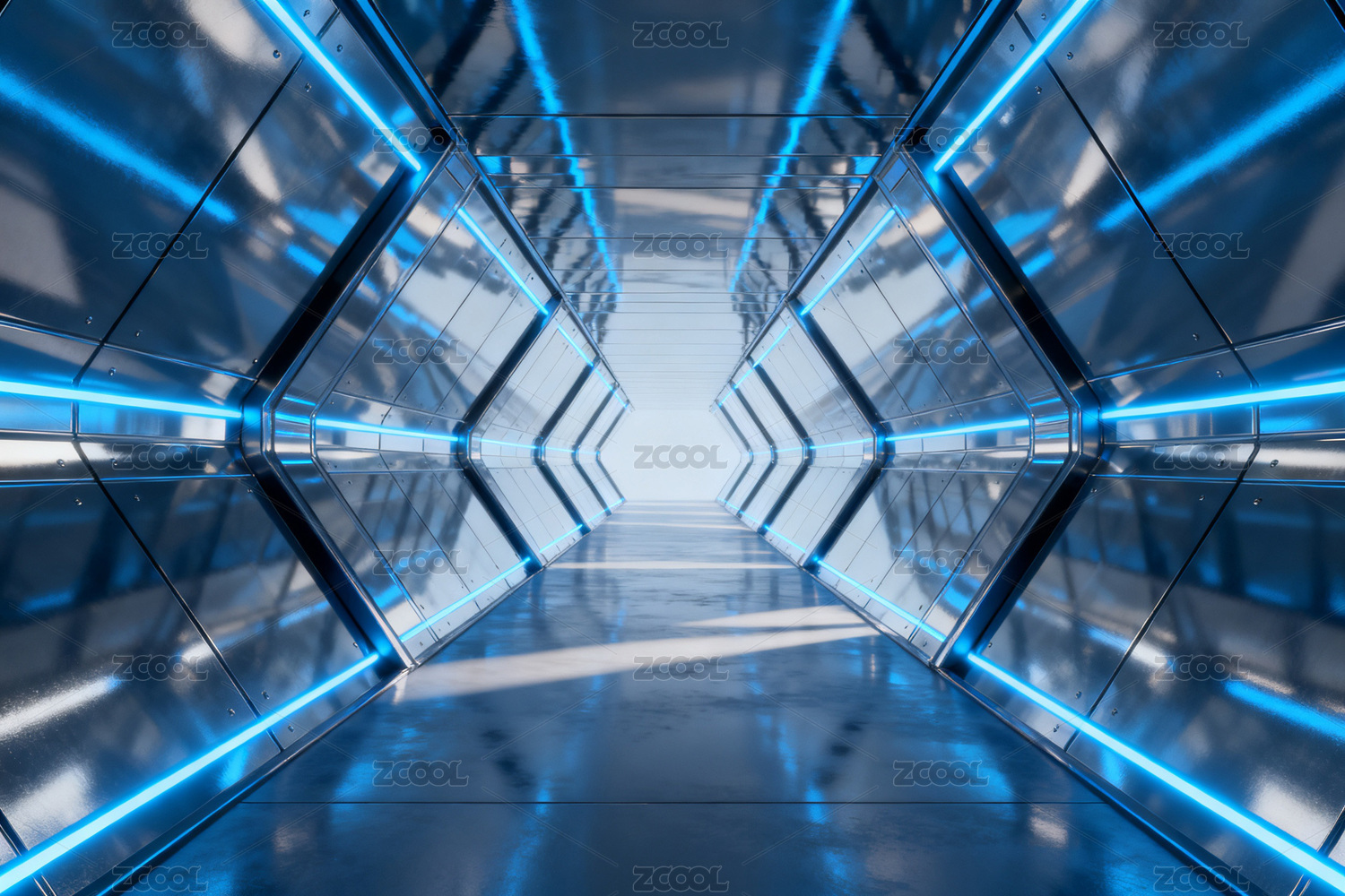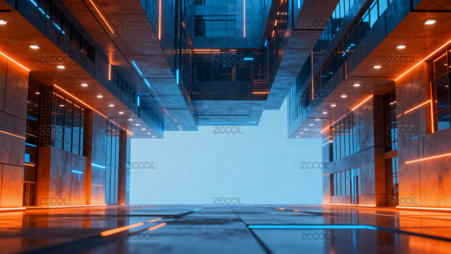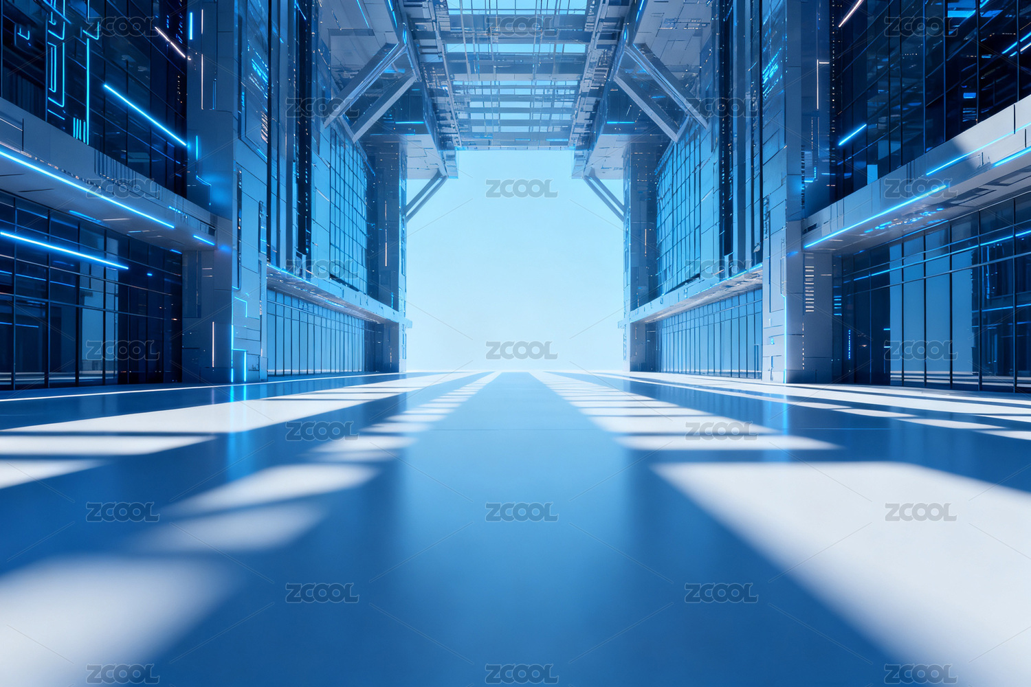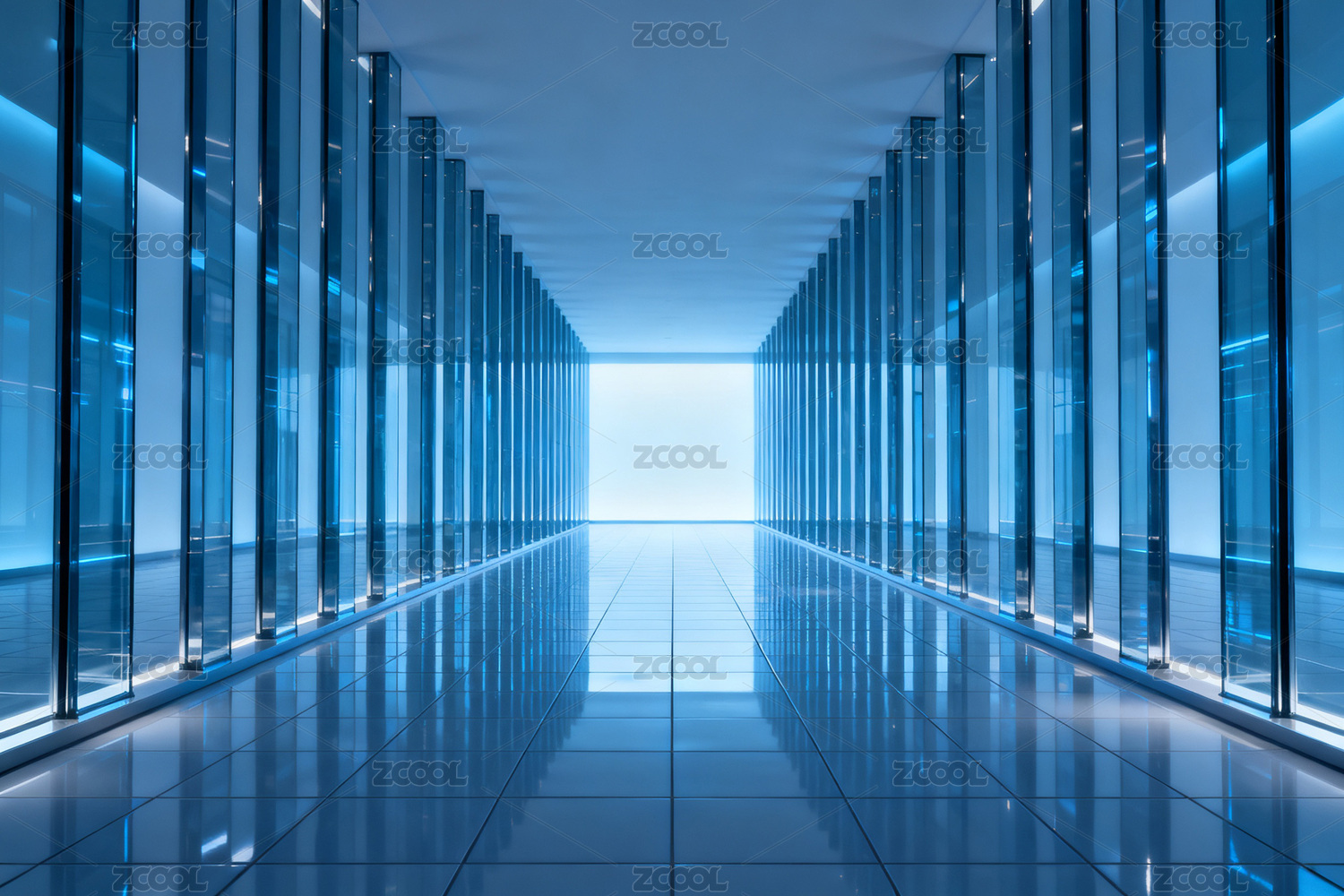 现代化的办公大楼,蓝色色调图像的自动扶梯。