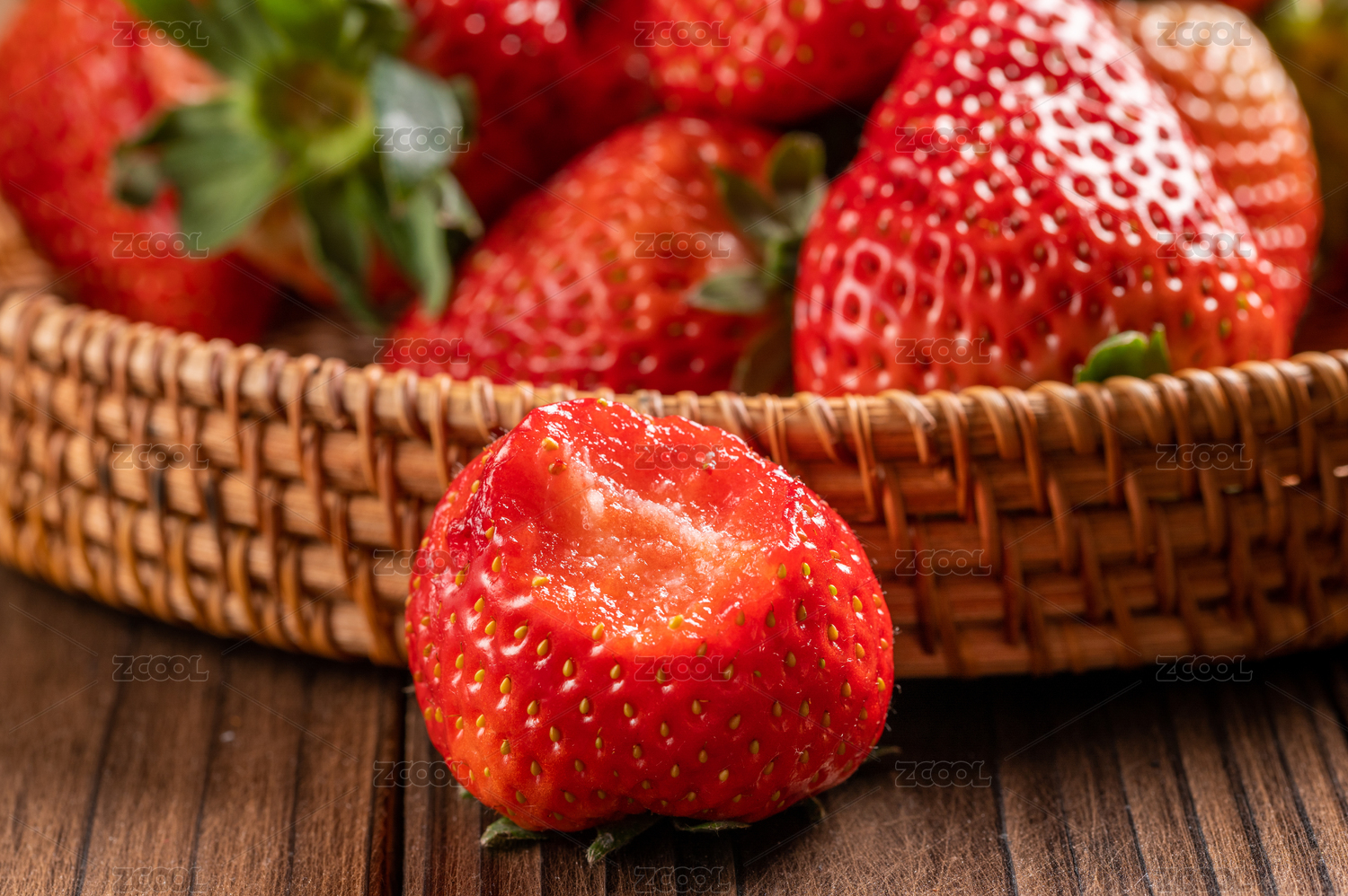 木纹桌上的丹东九九草莓