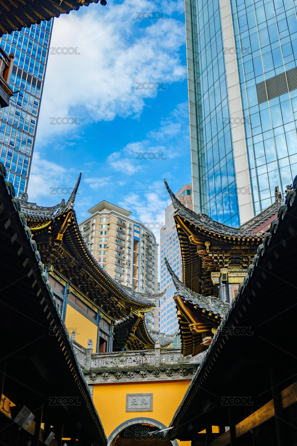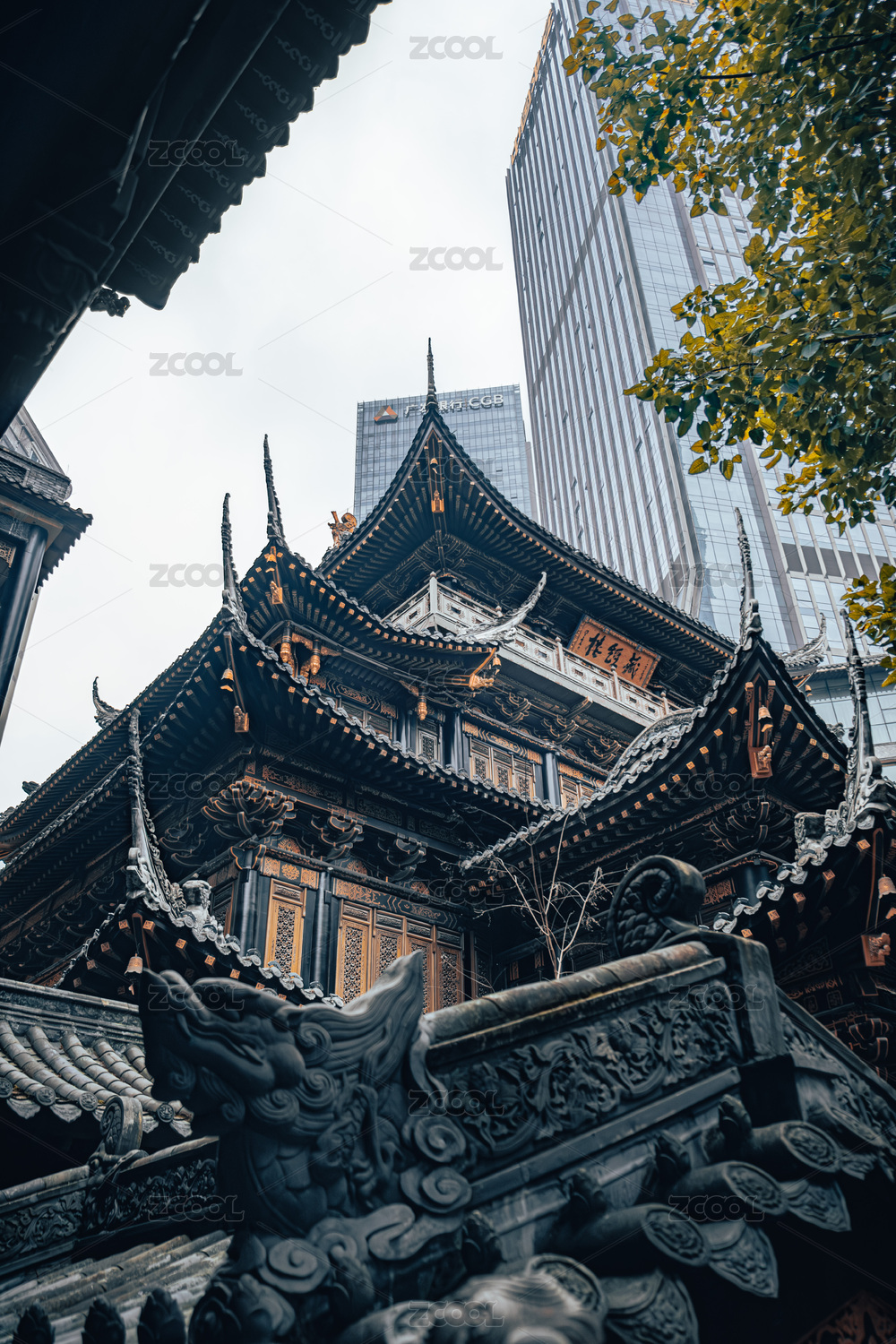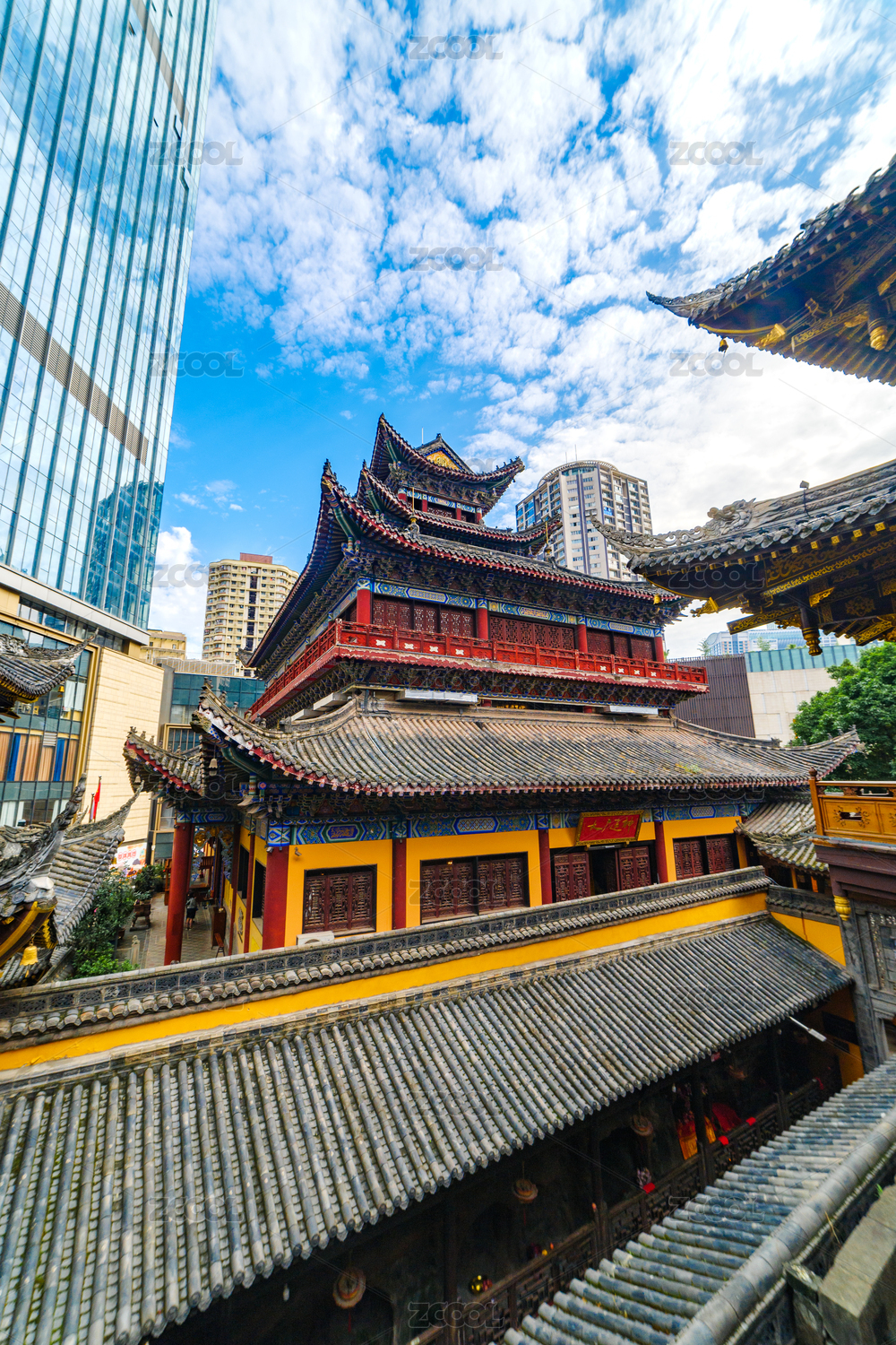 重庆罗汉寺古建筑与现代建筑对比