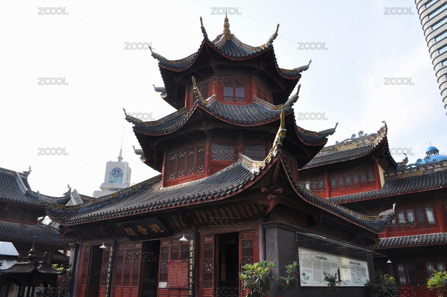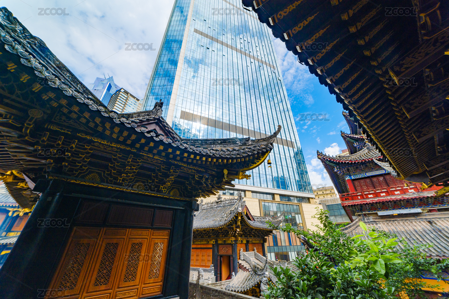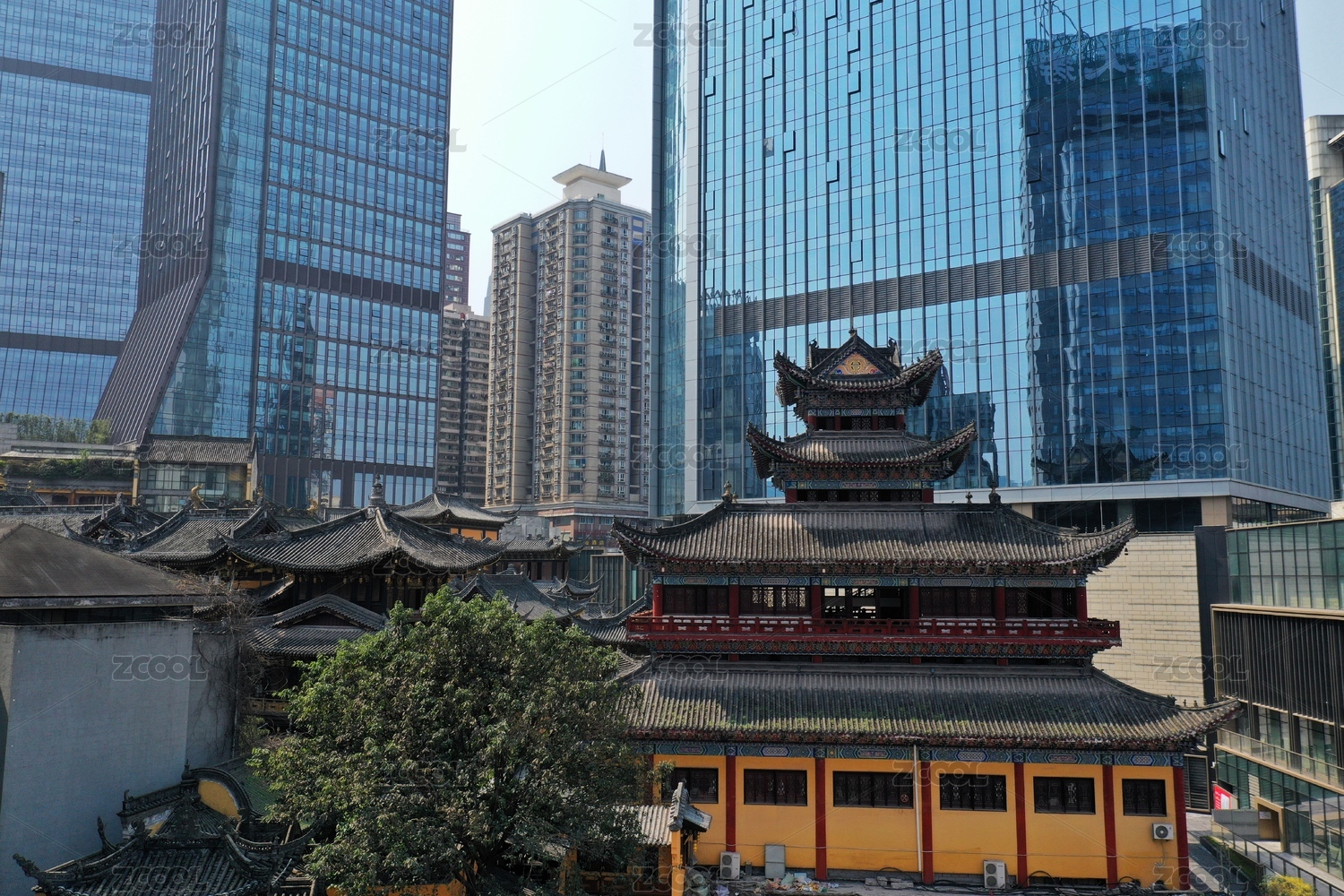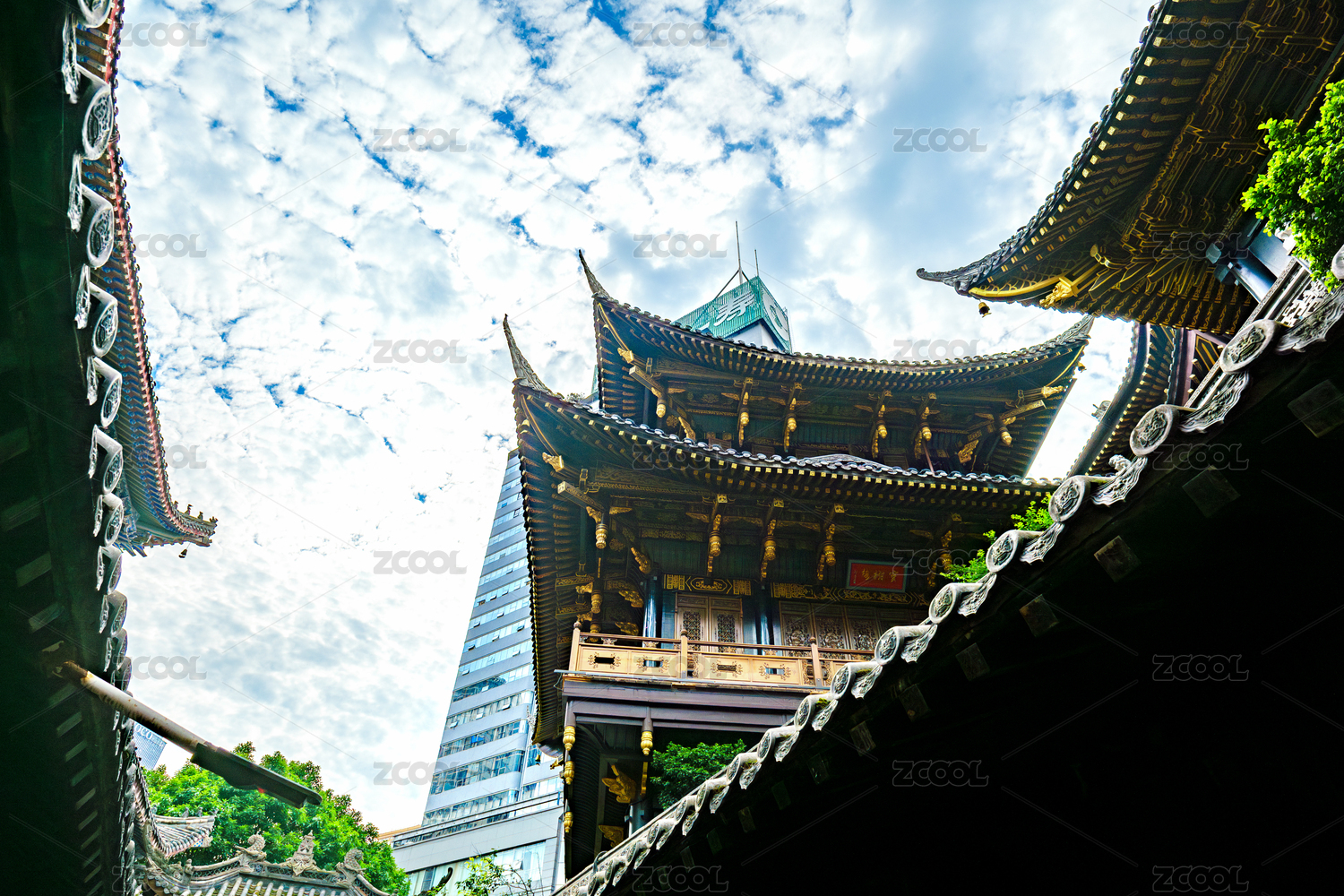 重庆罗汉寺古建筑与现代建筑对比