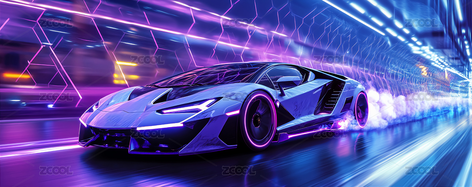 蓝色科技风时光隧道汽车运动炫酷大气背景