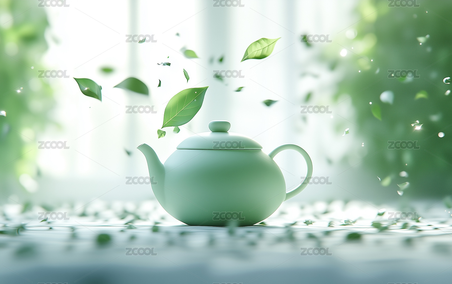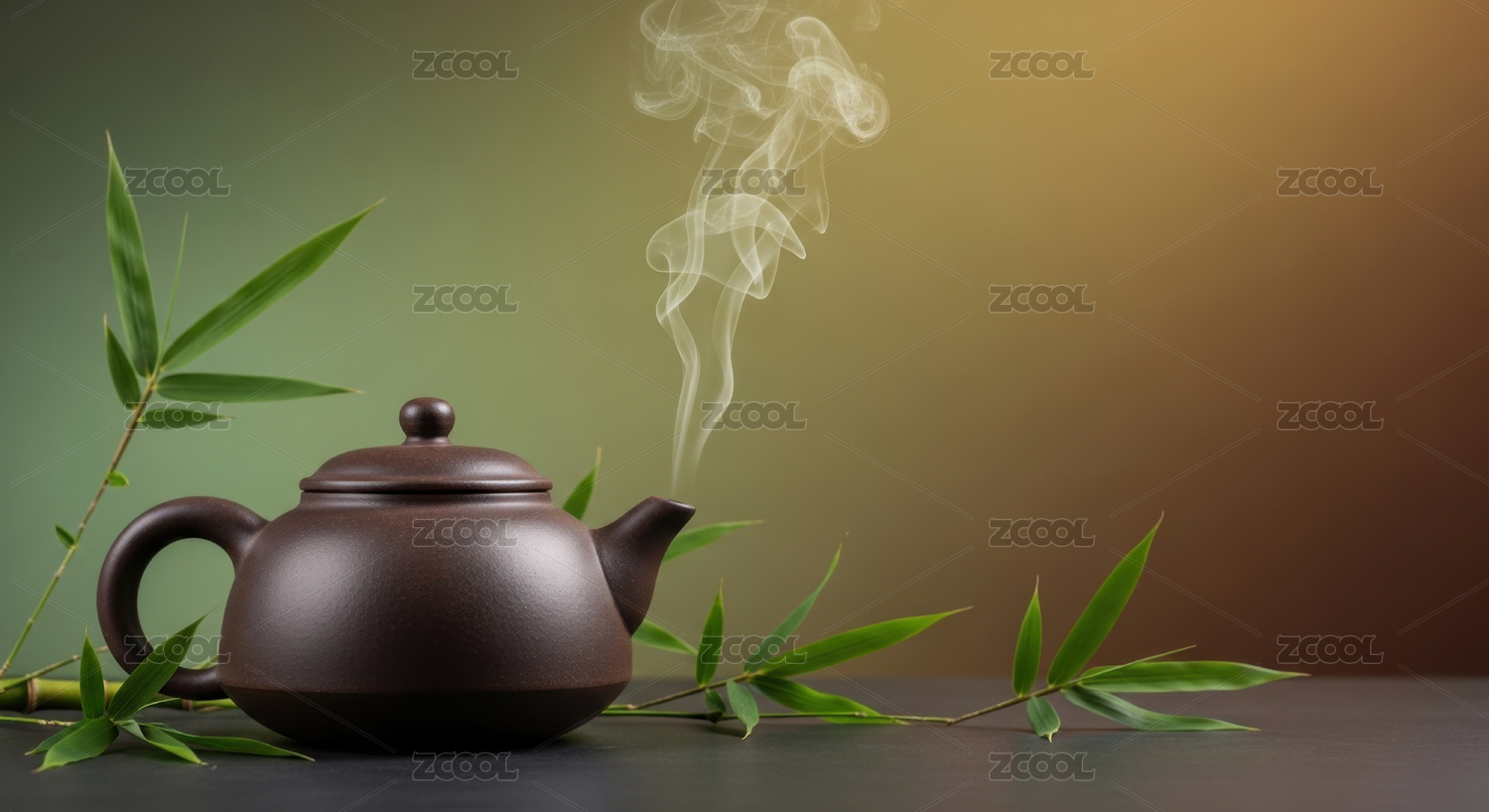 茶壶,茶杯,热气,茶道,宁静,温暖,放松,光线,绿色,植物