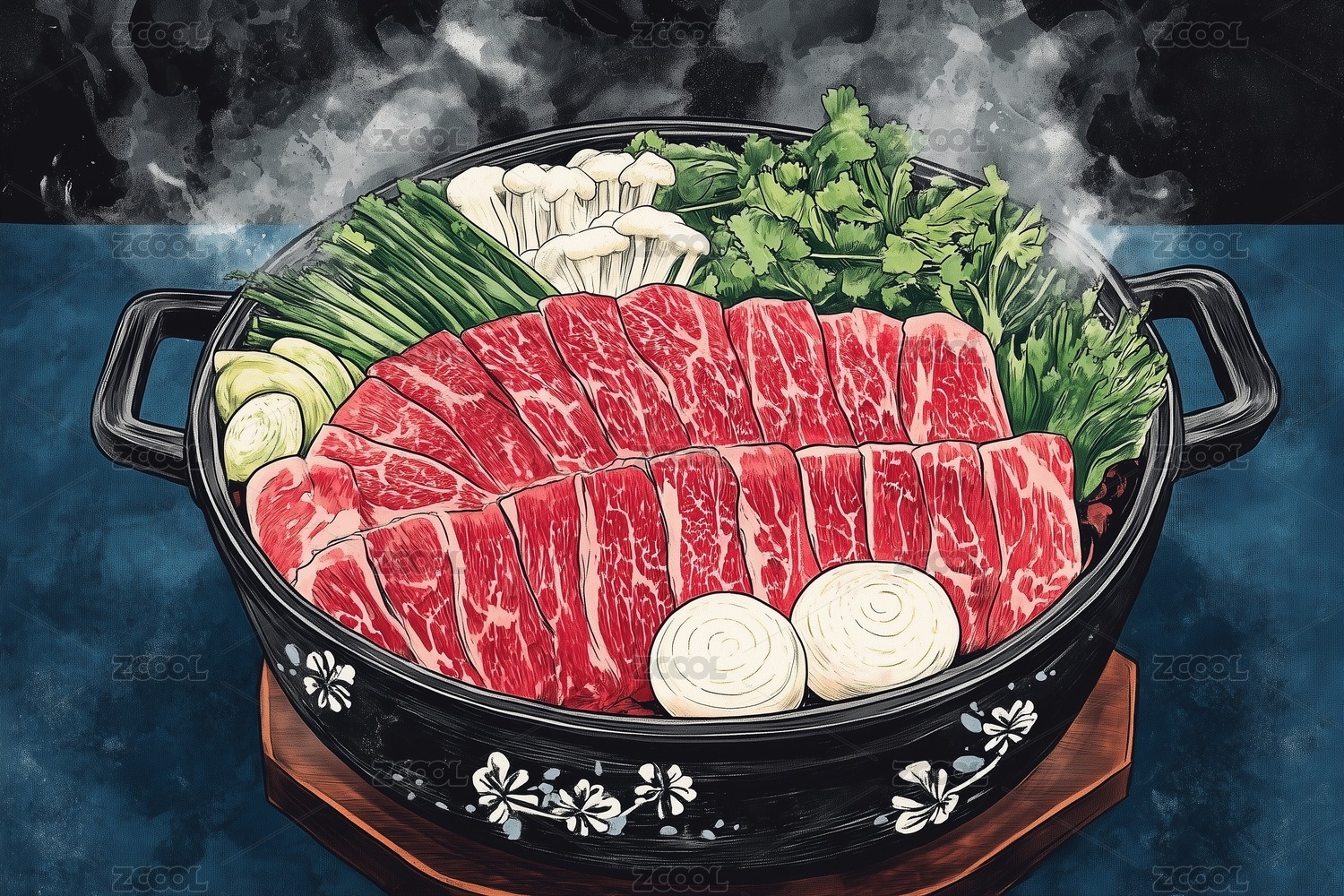 文化,浮世绘,复古,插画,传统,背景,AIGCFG01,绘画,美食,面条