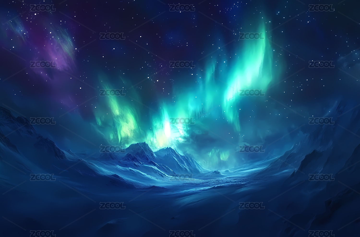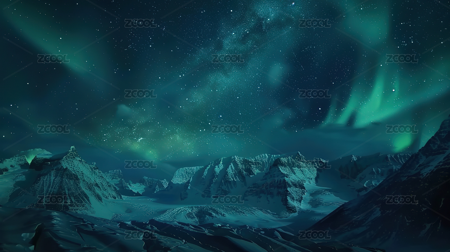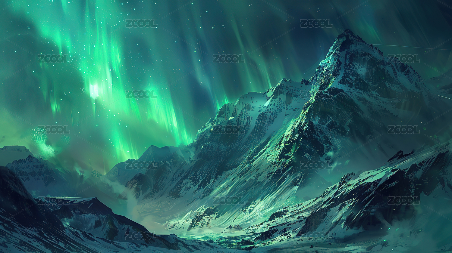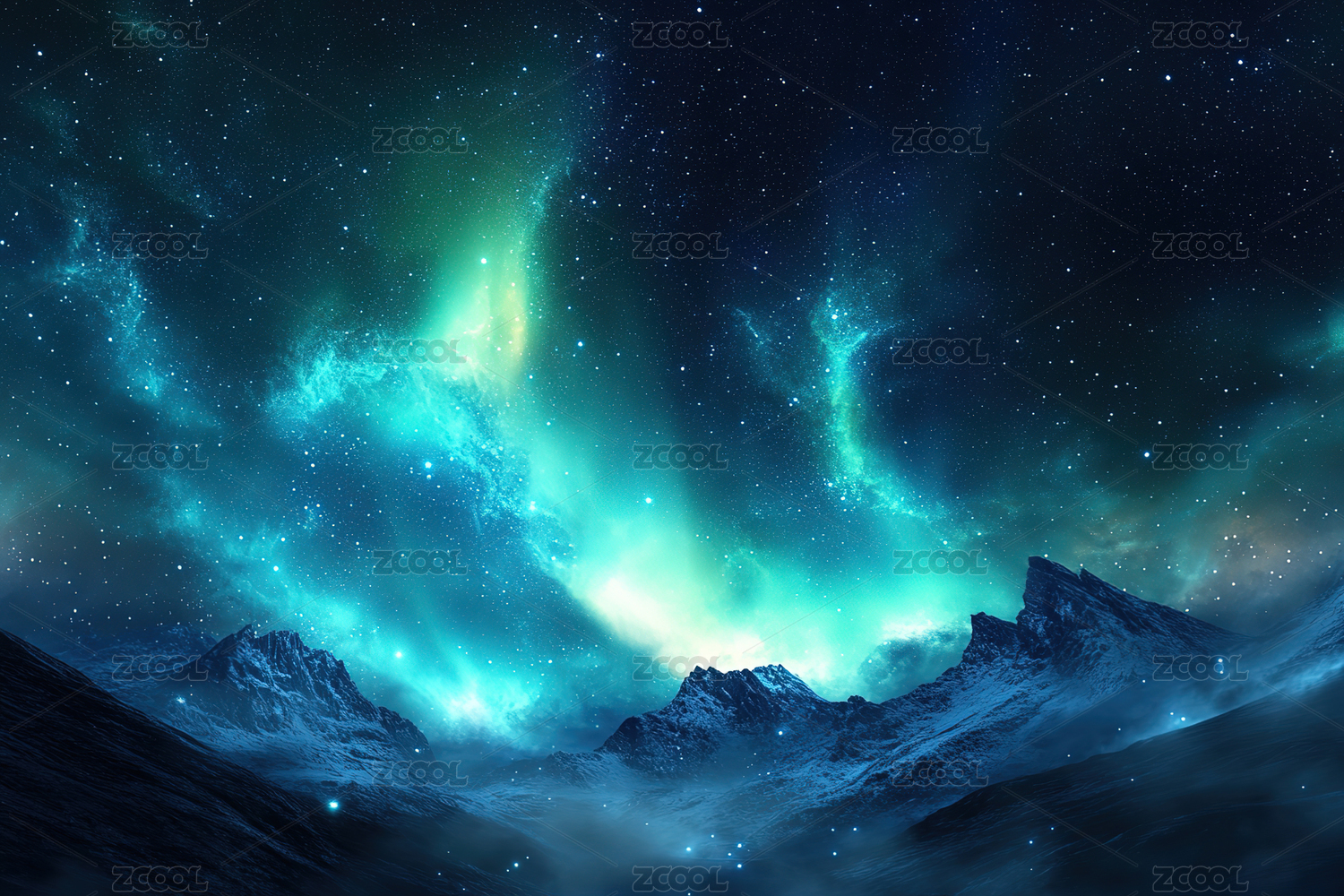 夜晚,风景,高山,宁静,绿色,地形,天文学,雪,自然美,极光