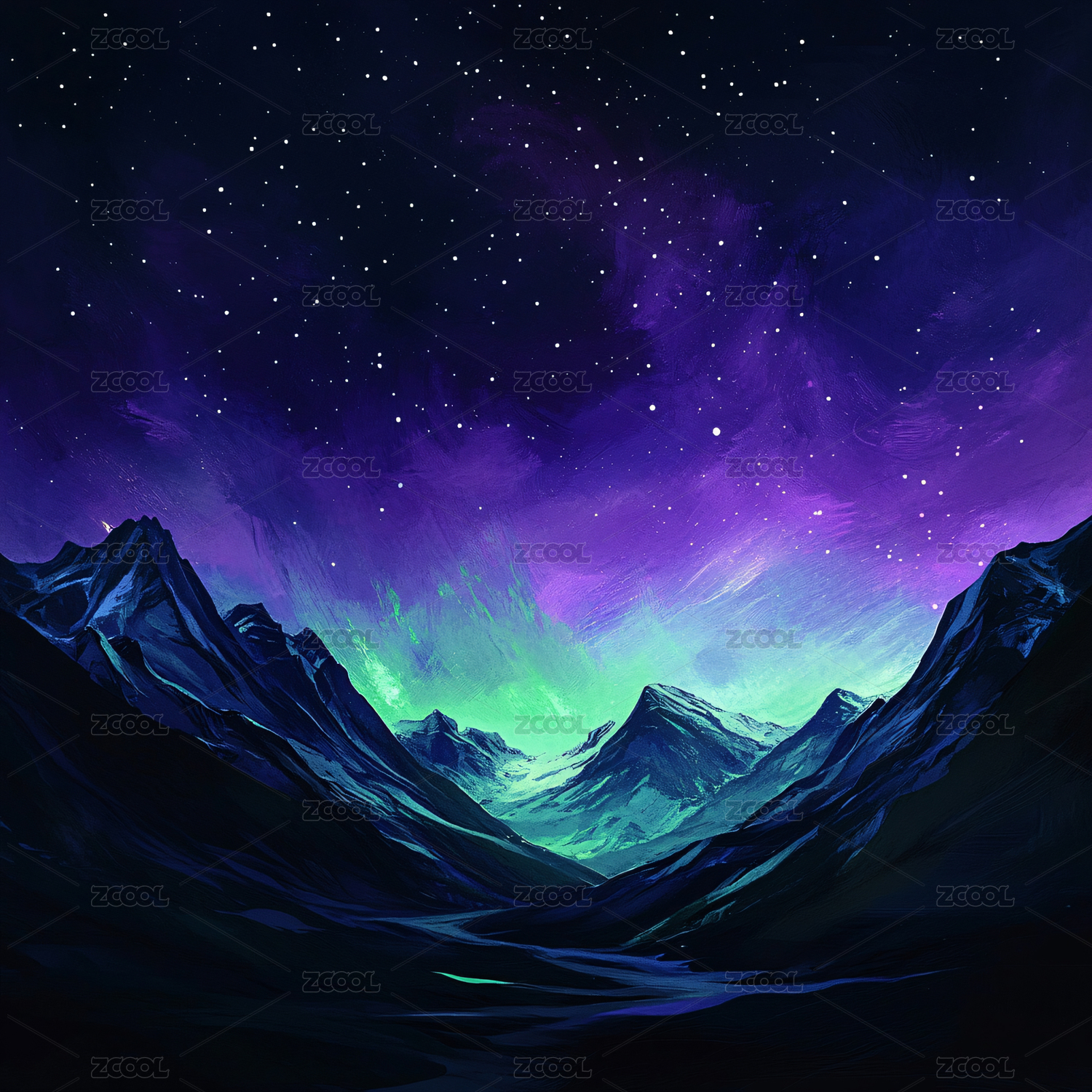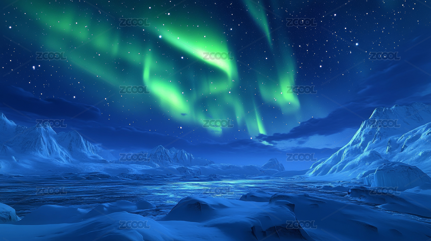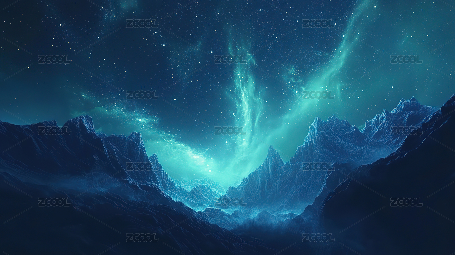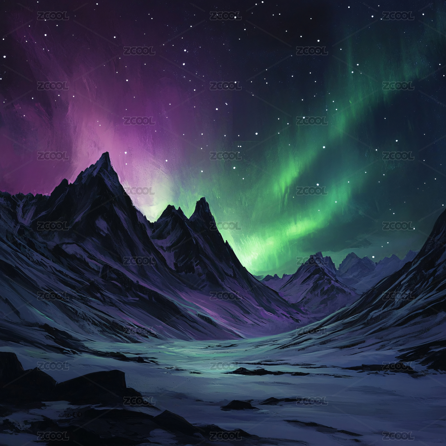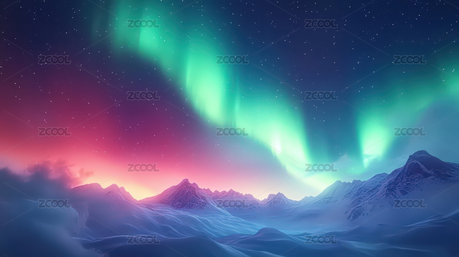 夜晚,风景,高山,宁静,绿色,地形,天文学,雪,自然美,极光