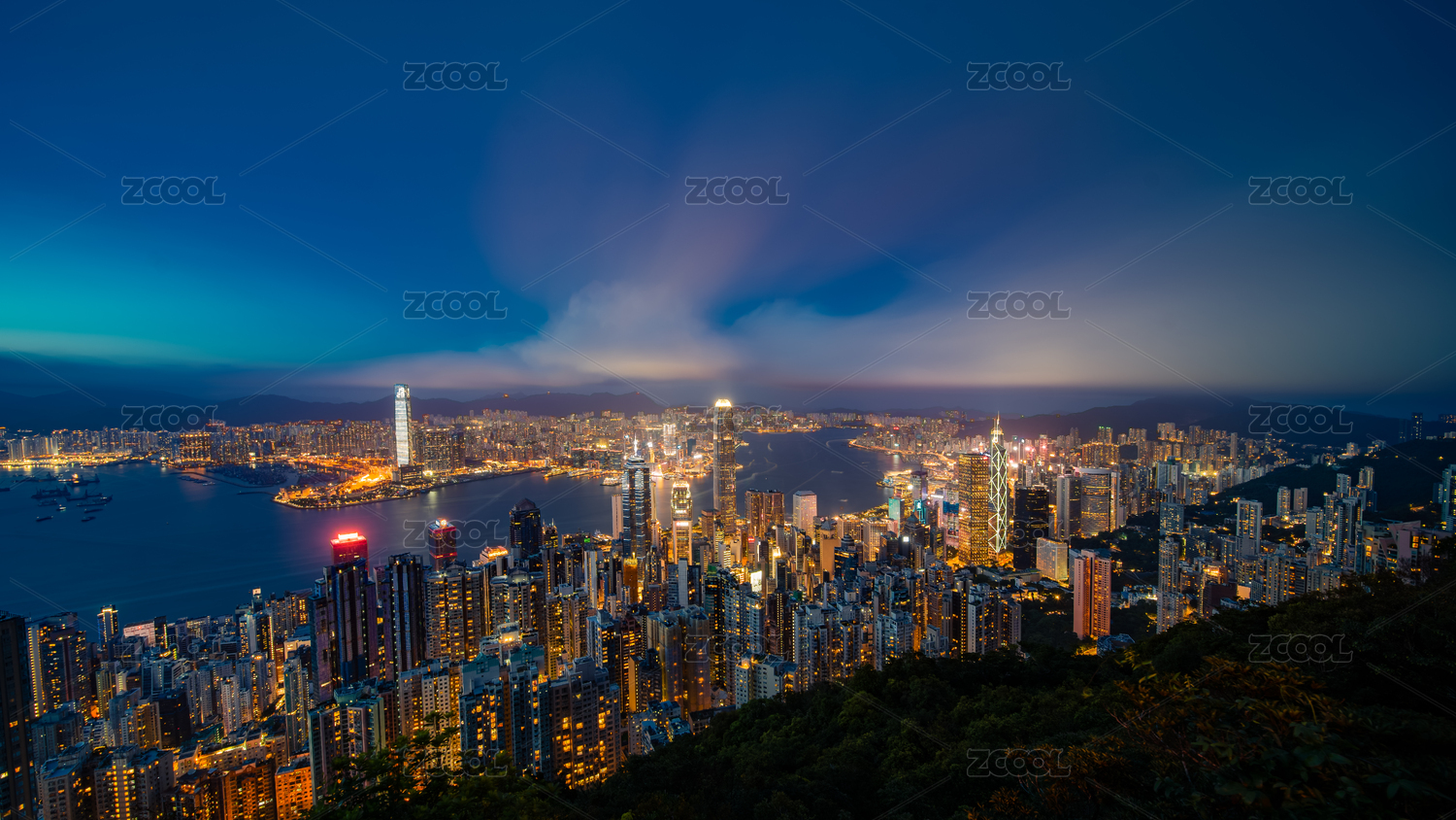 从高山上俯瞰中国澳门和珠海两地的城市夜景和交通连接