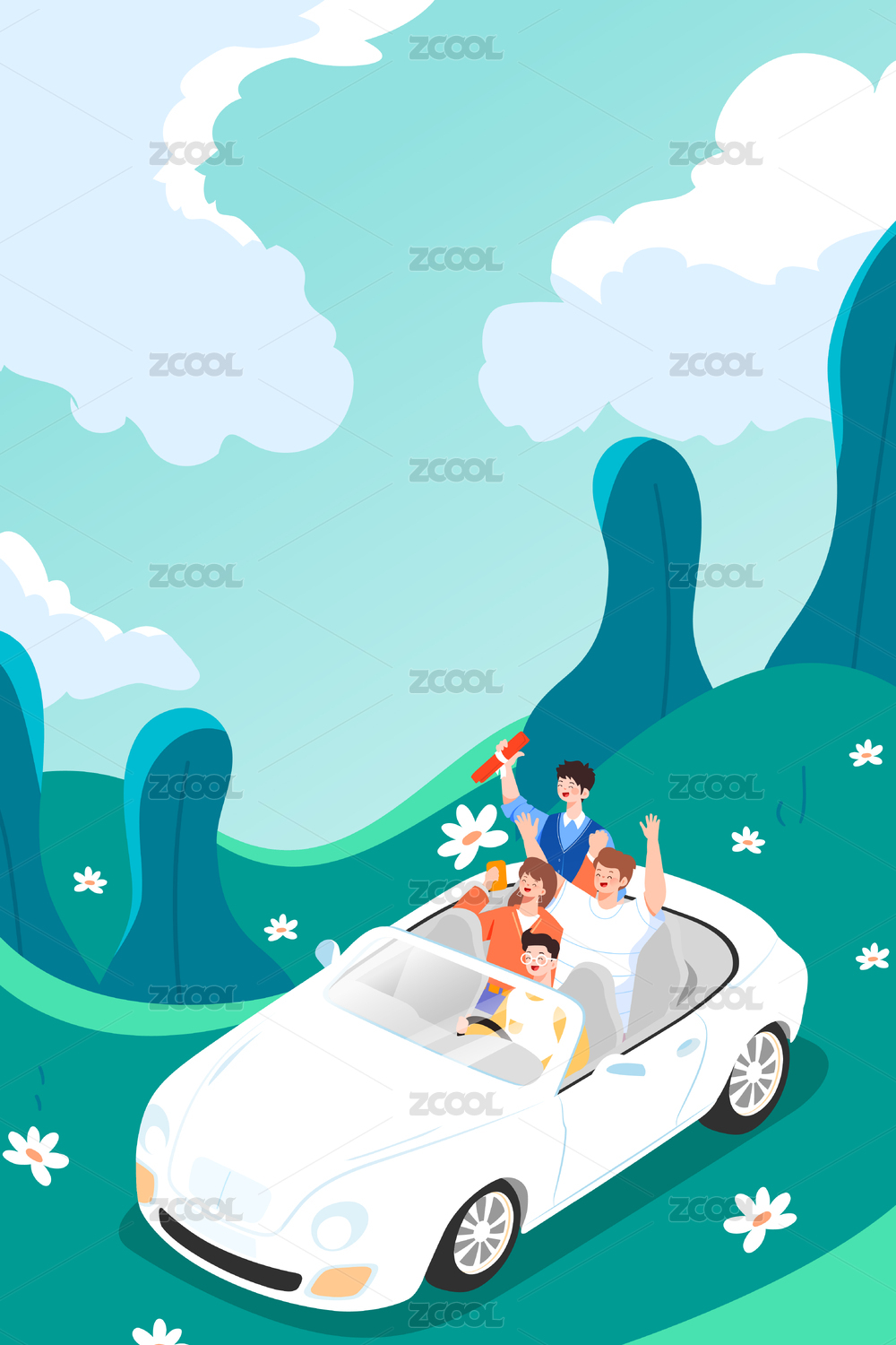自驾游朋友旅游矢量插画