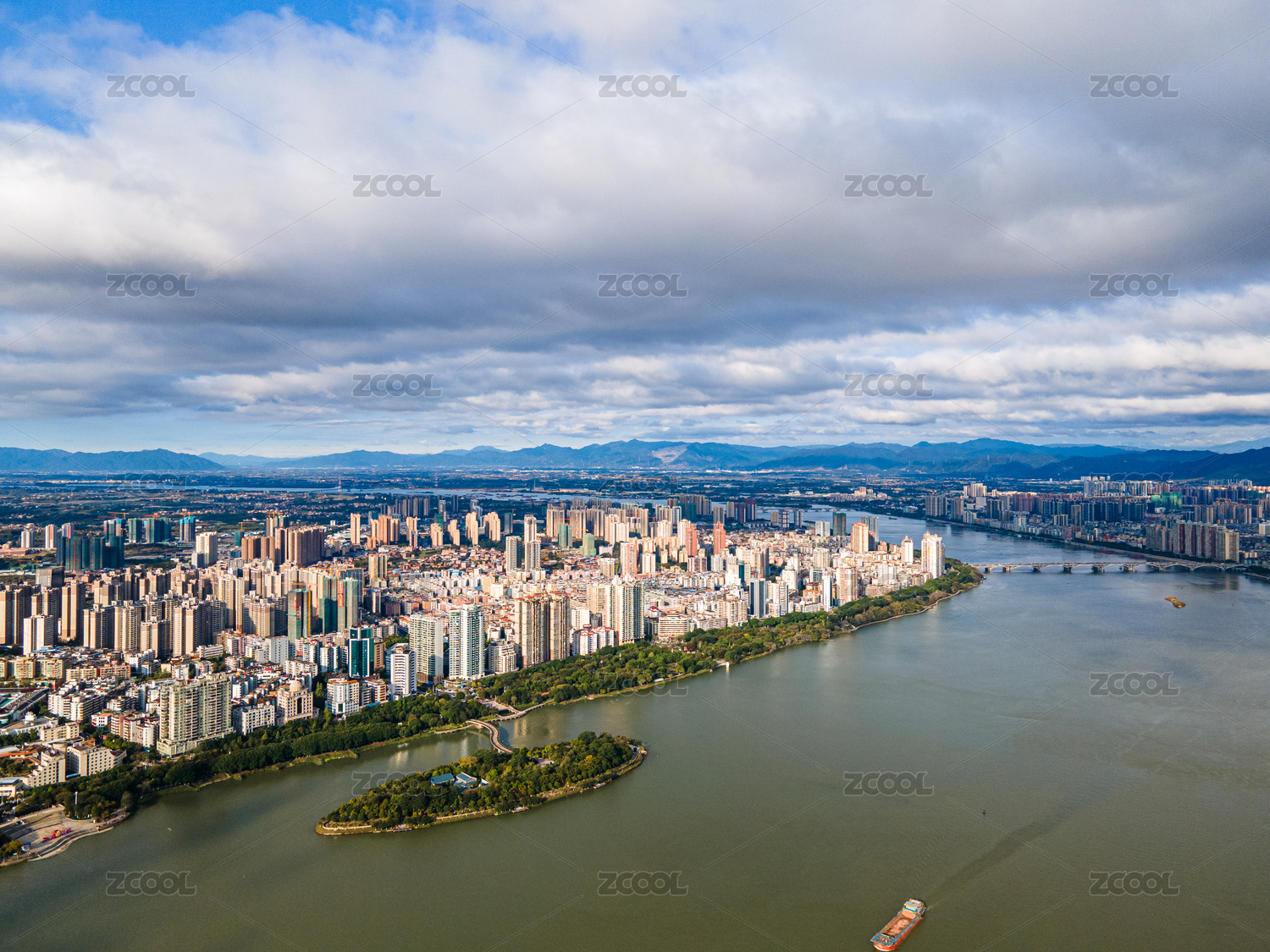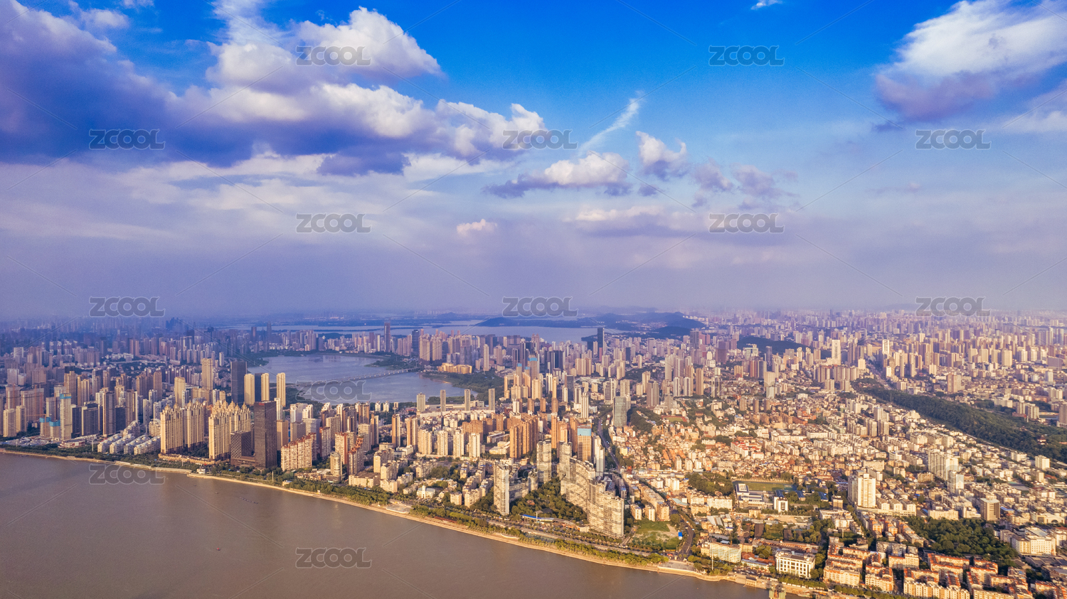 夏季白天航拍安徽芜湖长江青弋江沿岸风光
