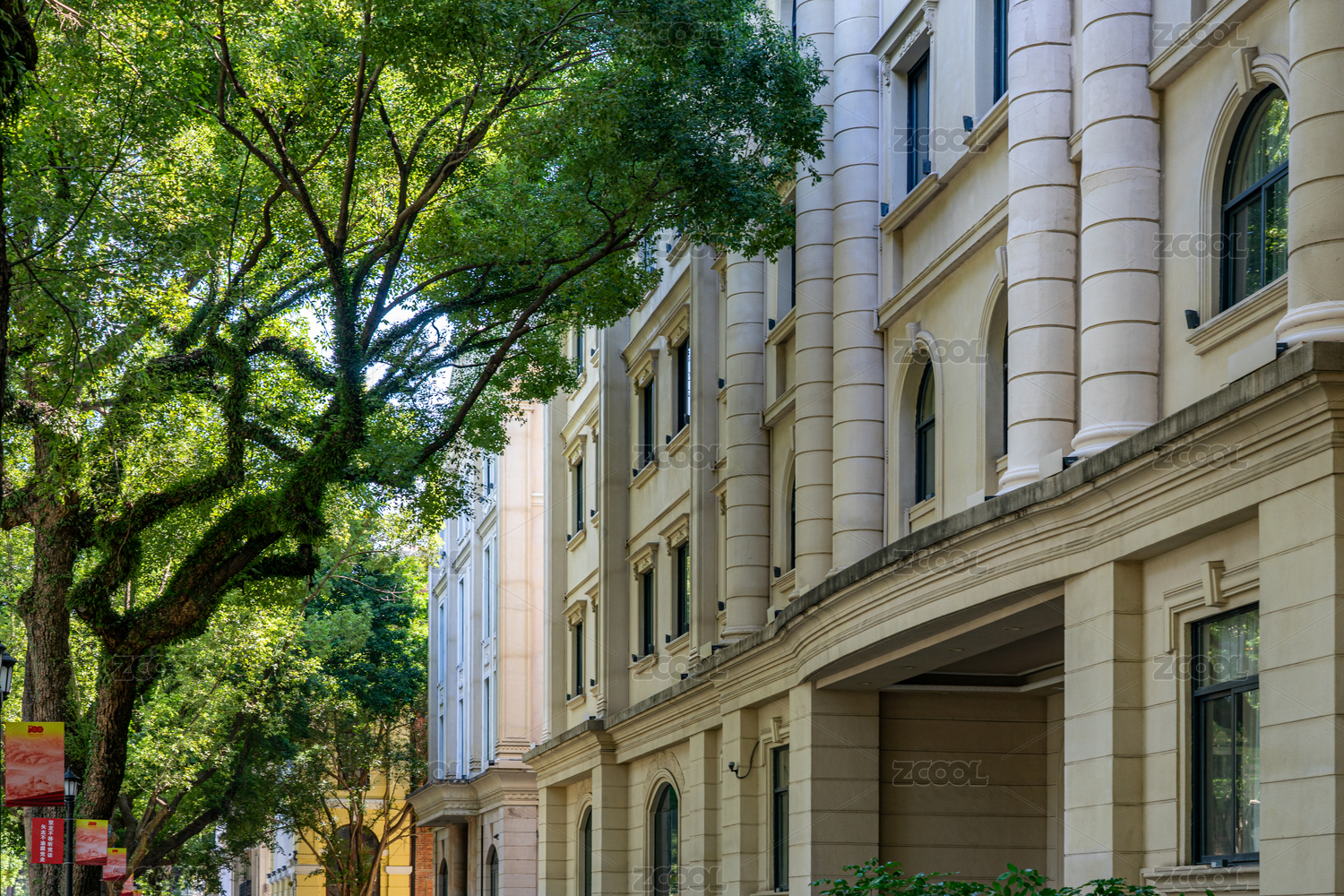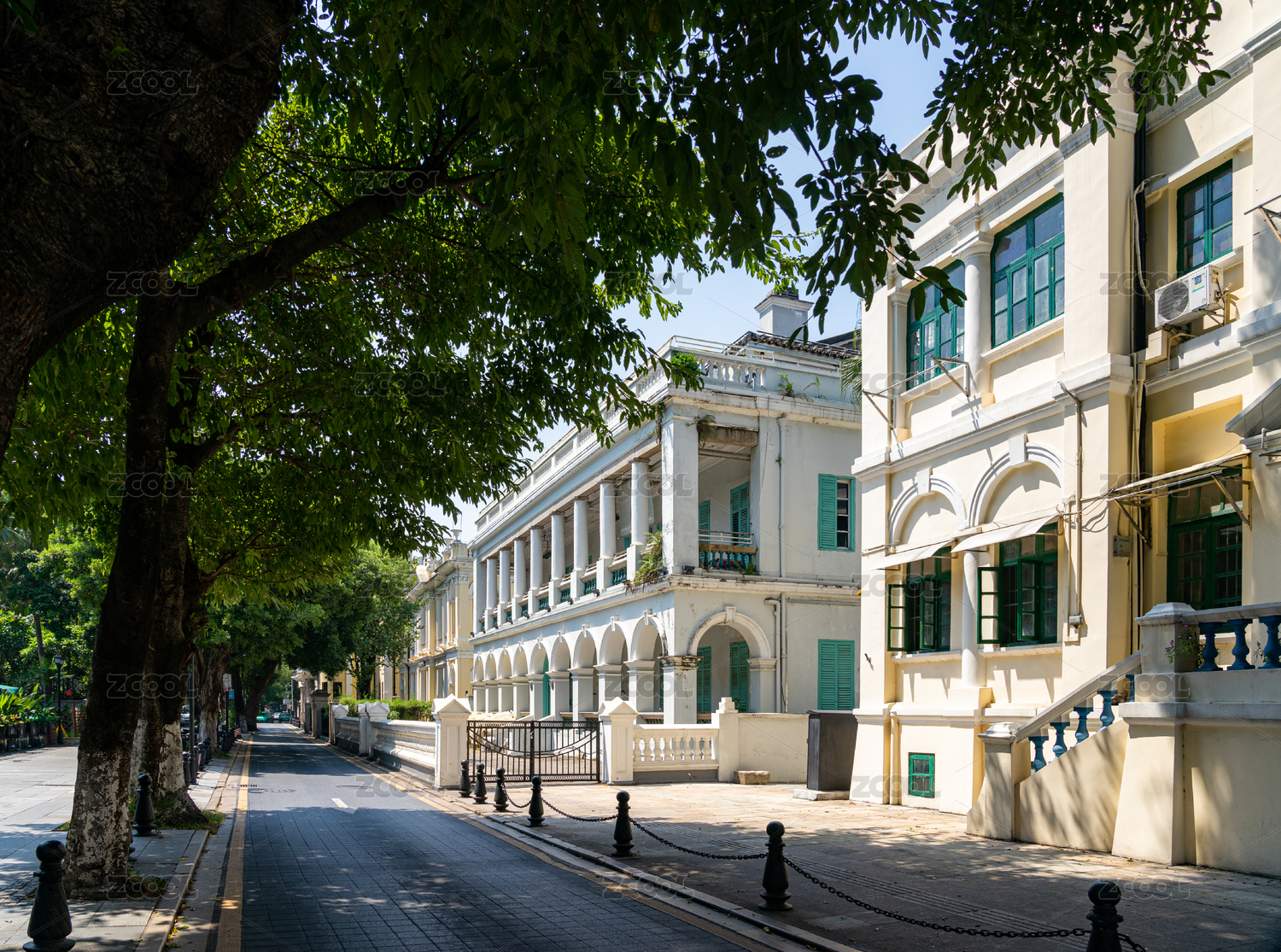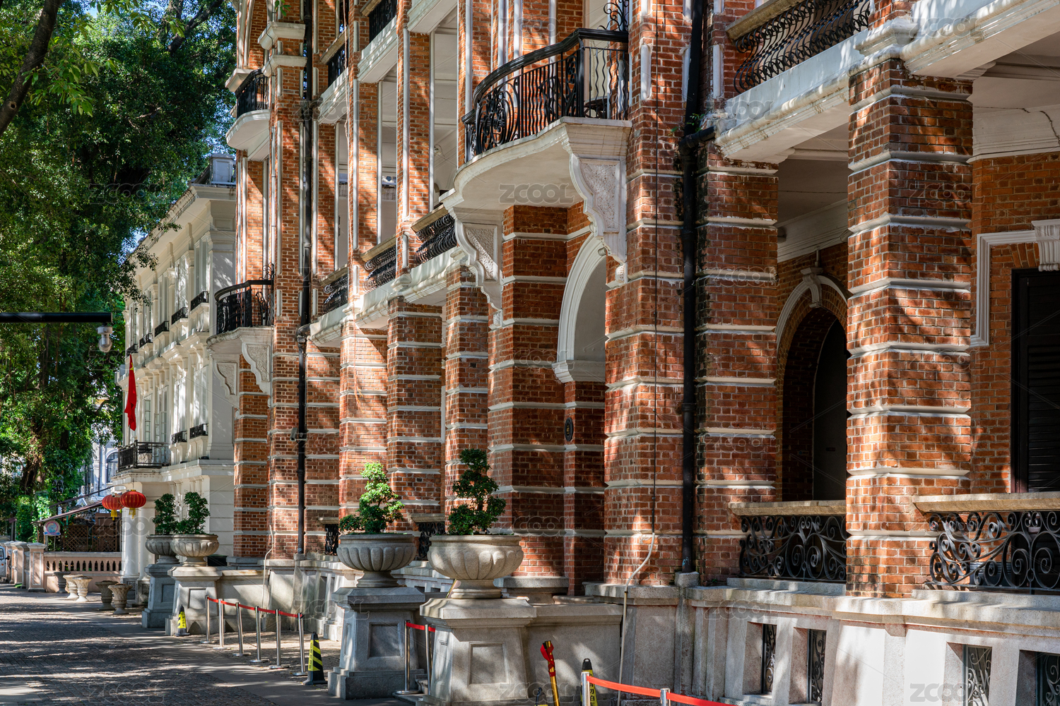 中国广东广州沙面岛旅游区欧陆风情建筑和街道