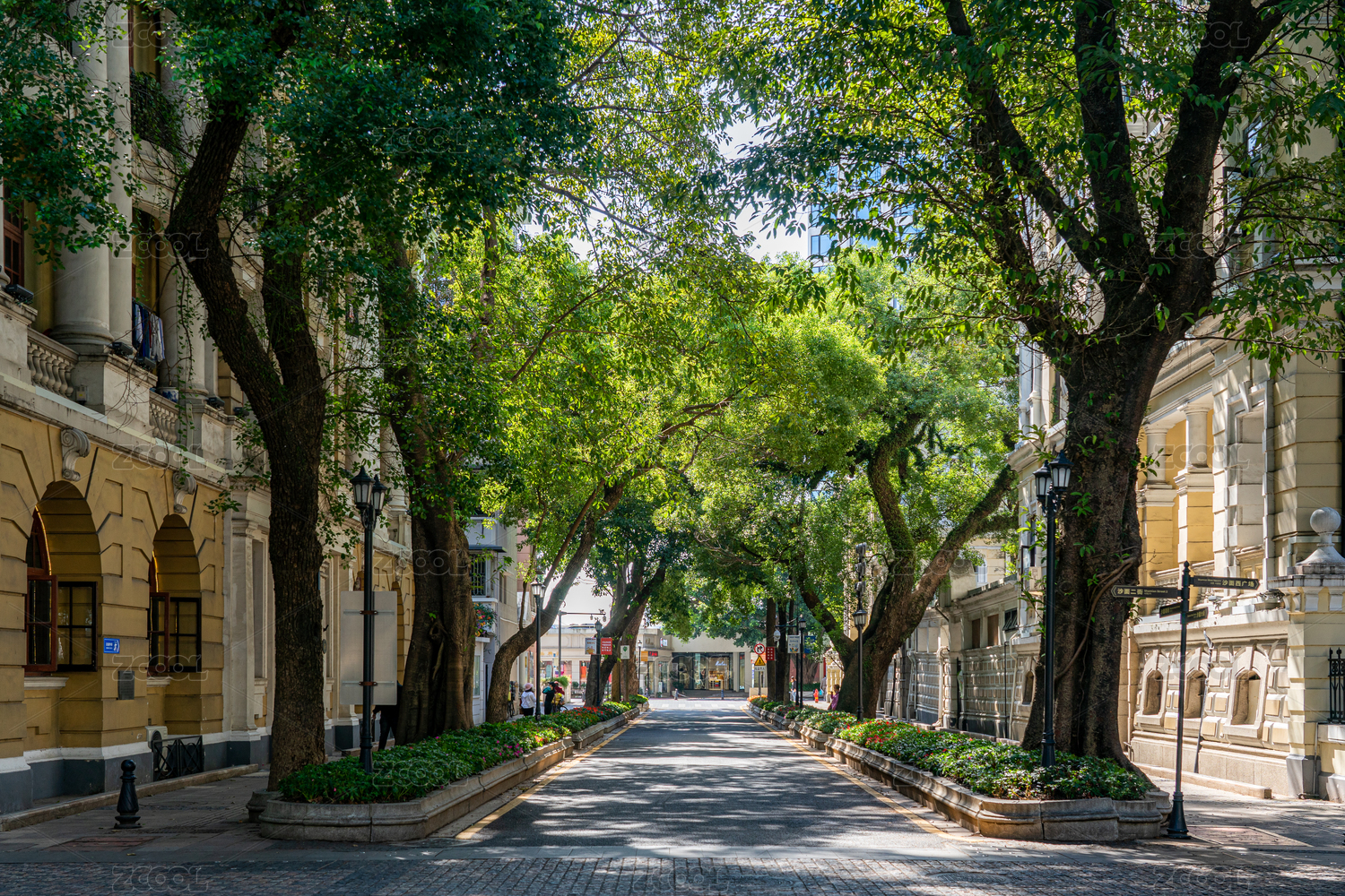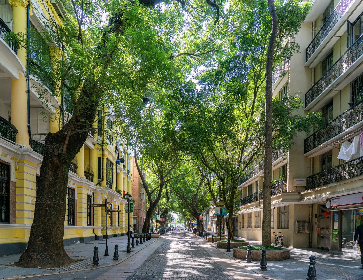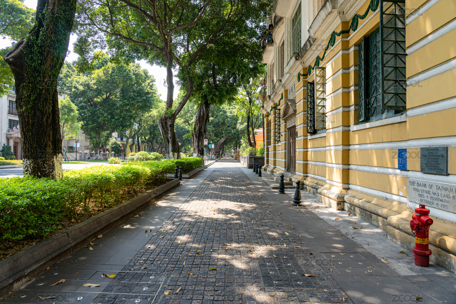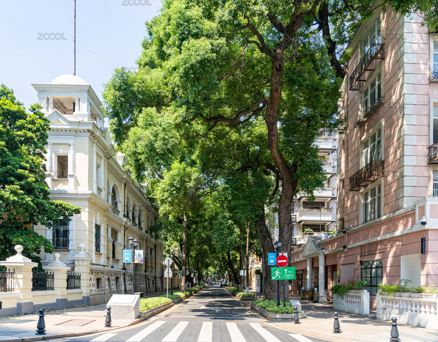 中国广东广州沙面岛旅游区欧陆风情建筑和街道