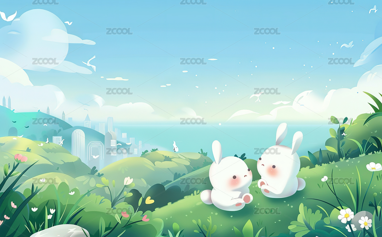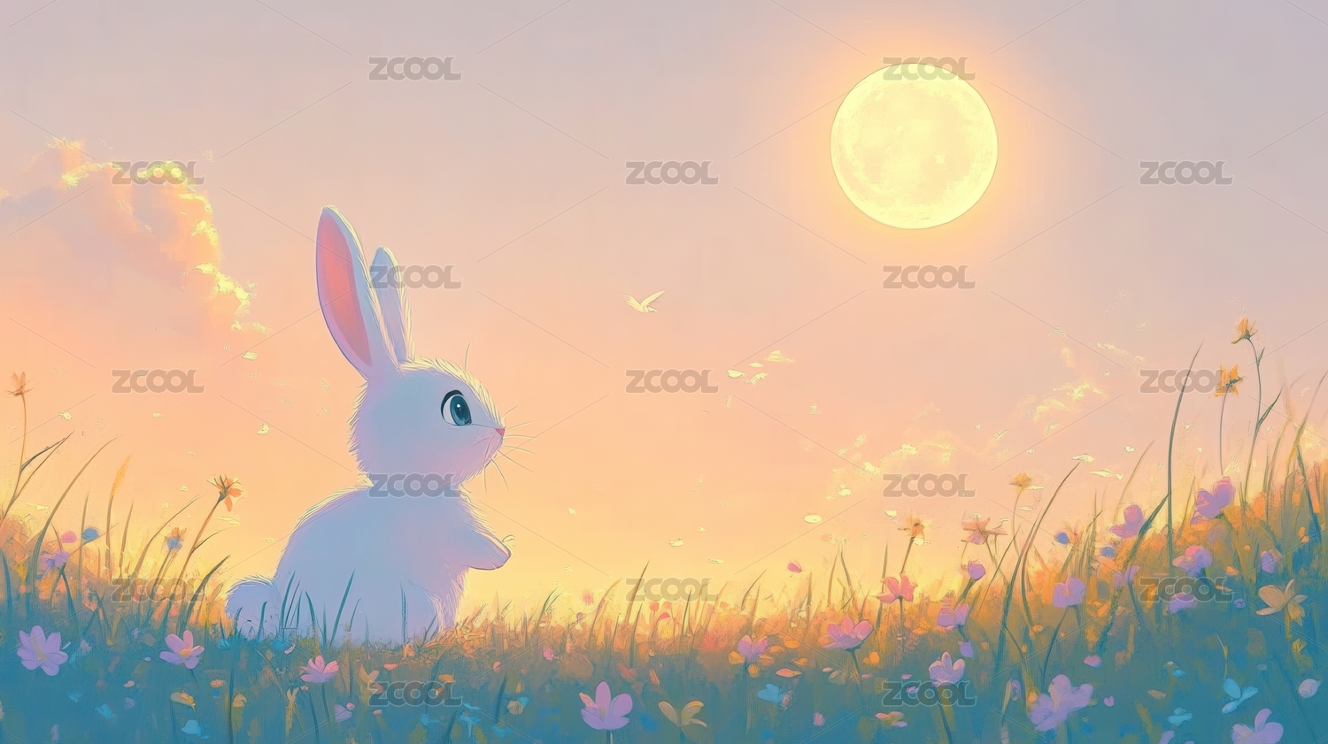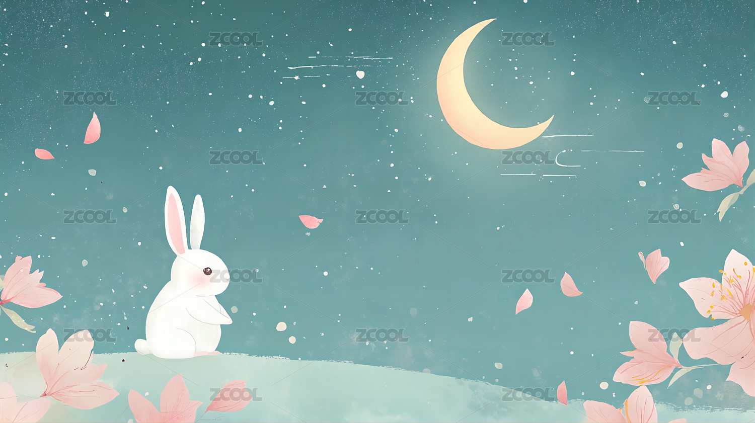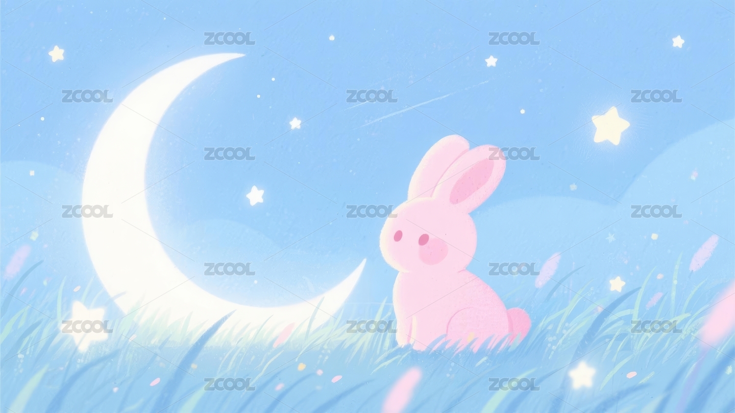 兔子治愈风格月夜场景展示