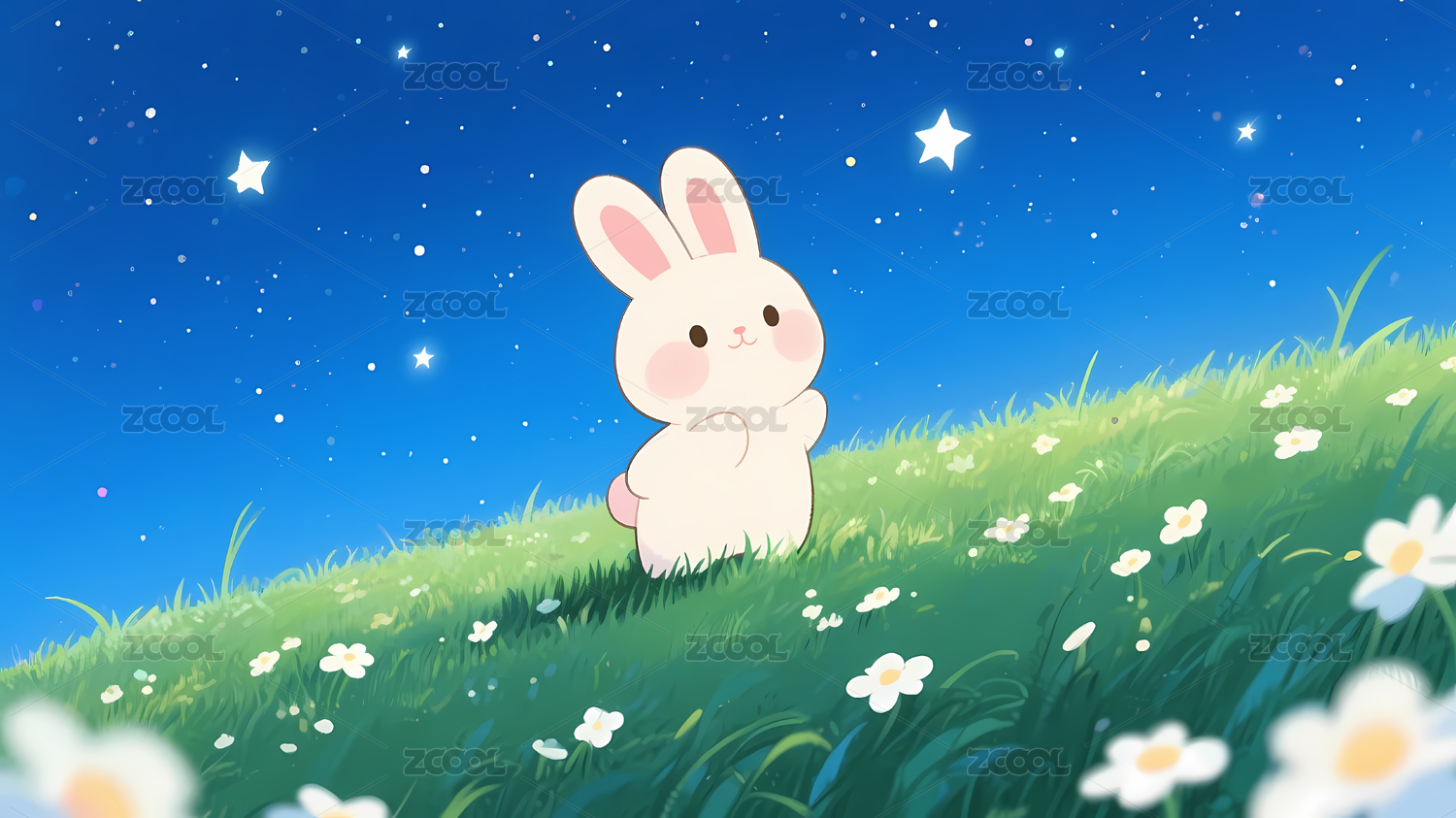 夜空白兔草地