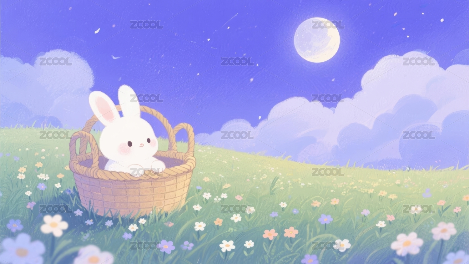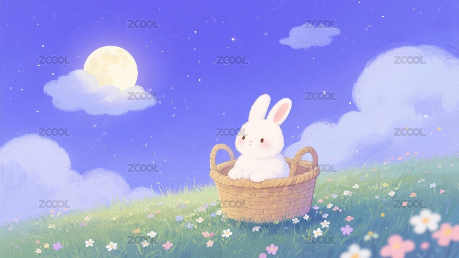 白兔篮子梦幻感月夜场景