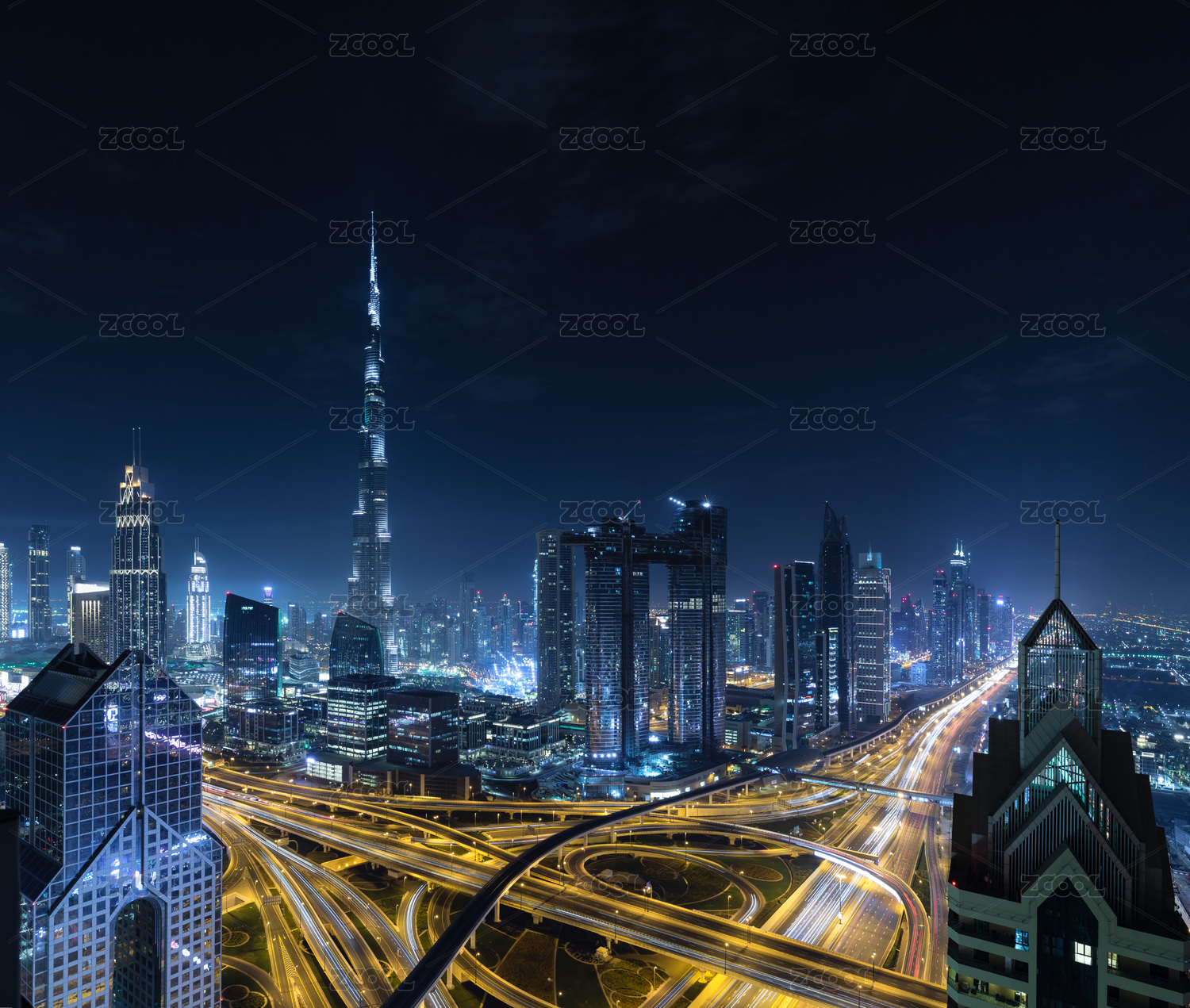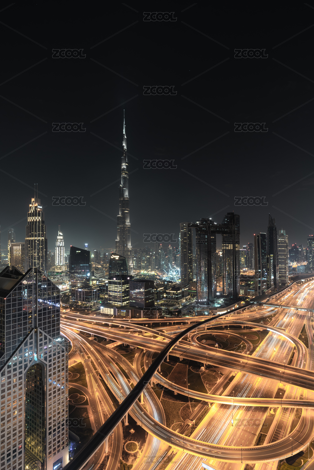 阿联酋迪拜赛博朋克风城市鸟瞰