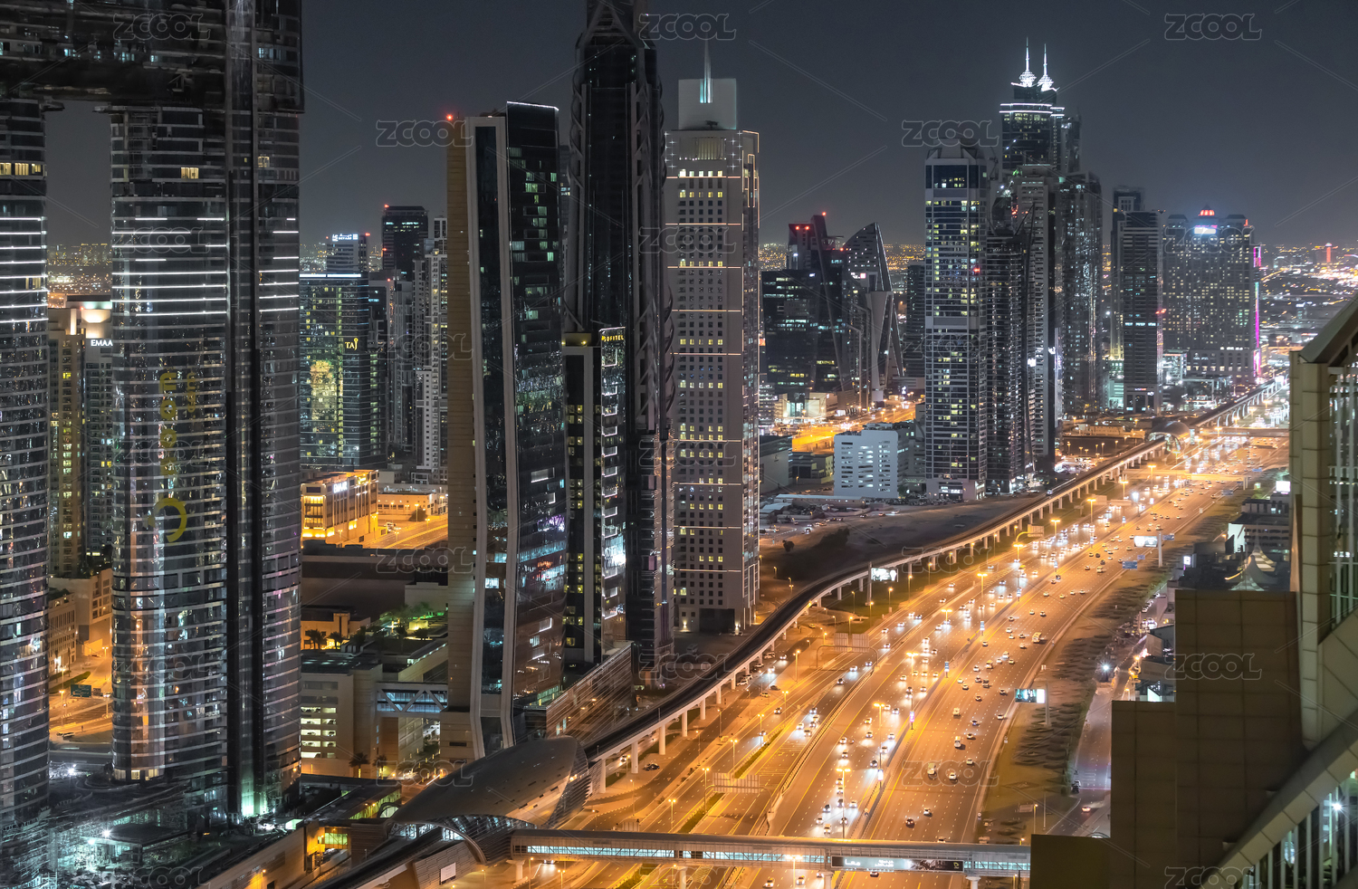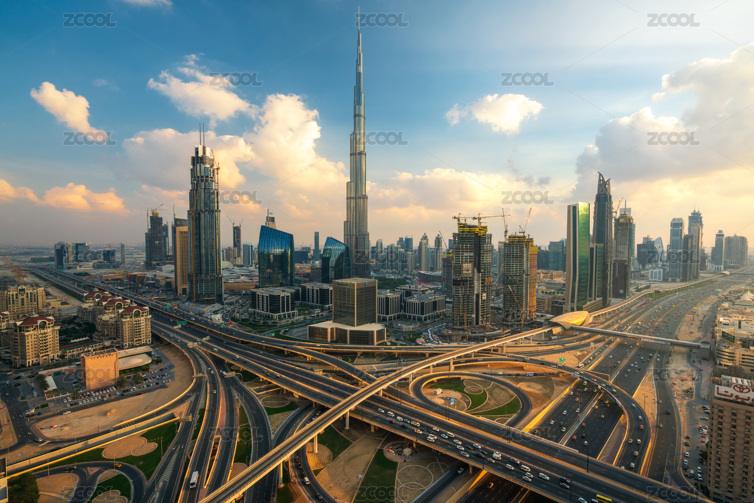 阿联酋,迪拜,城市,鸟瞰,都市,摩天大楼,天际线,赛博朋克,夜幕降临,傍晚