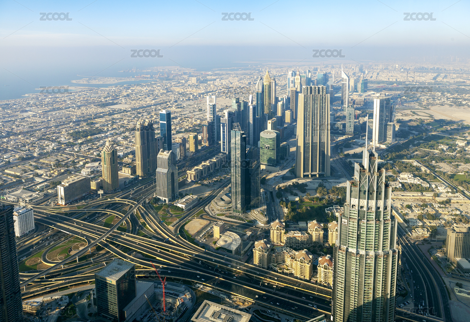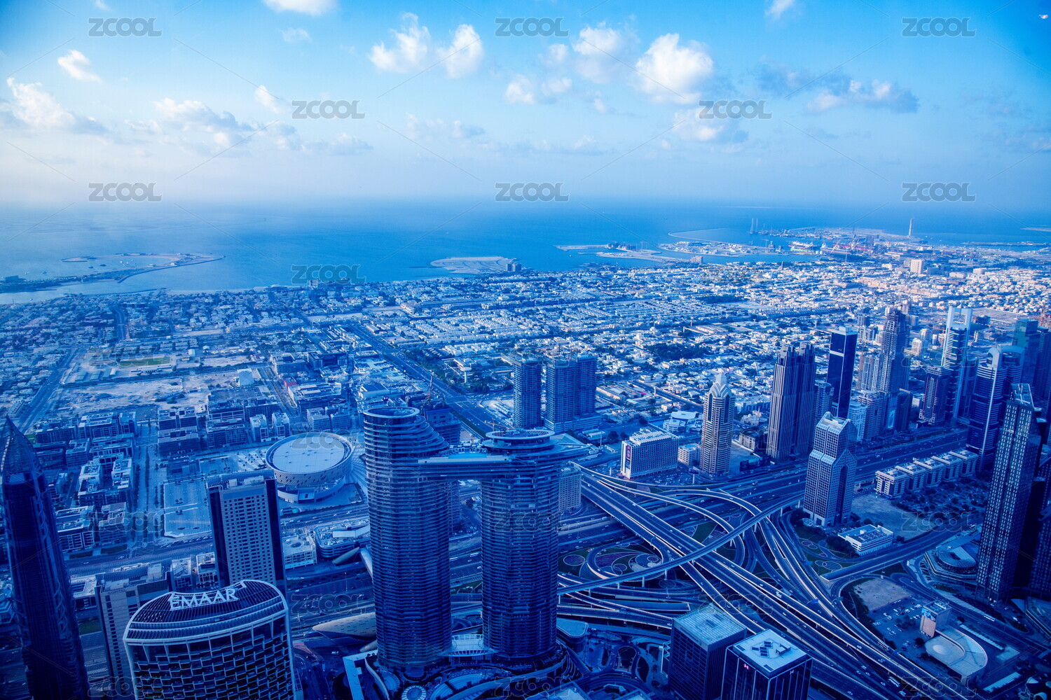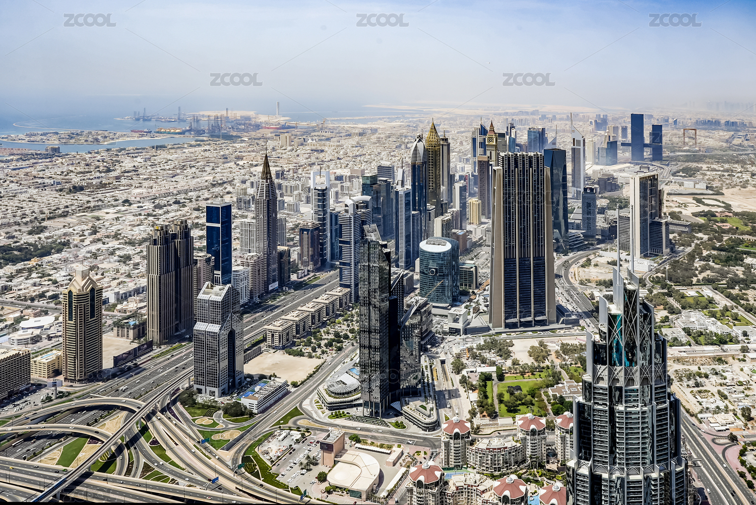 阿联酋迪拜哈利法塔上眺望迪拜城