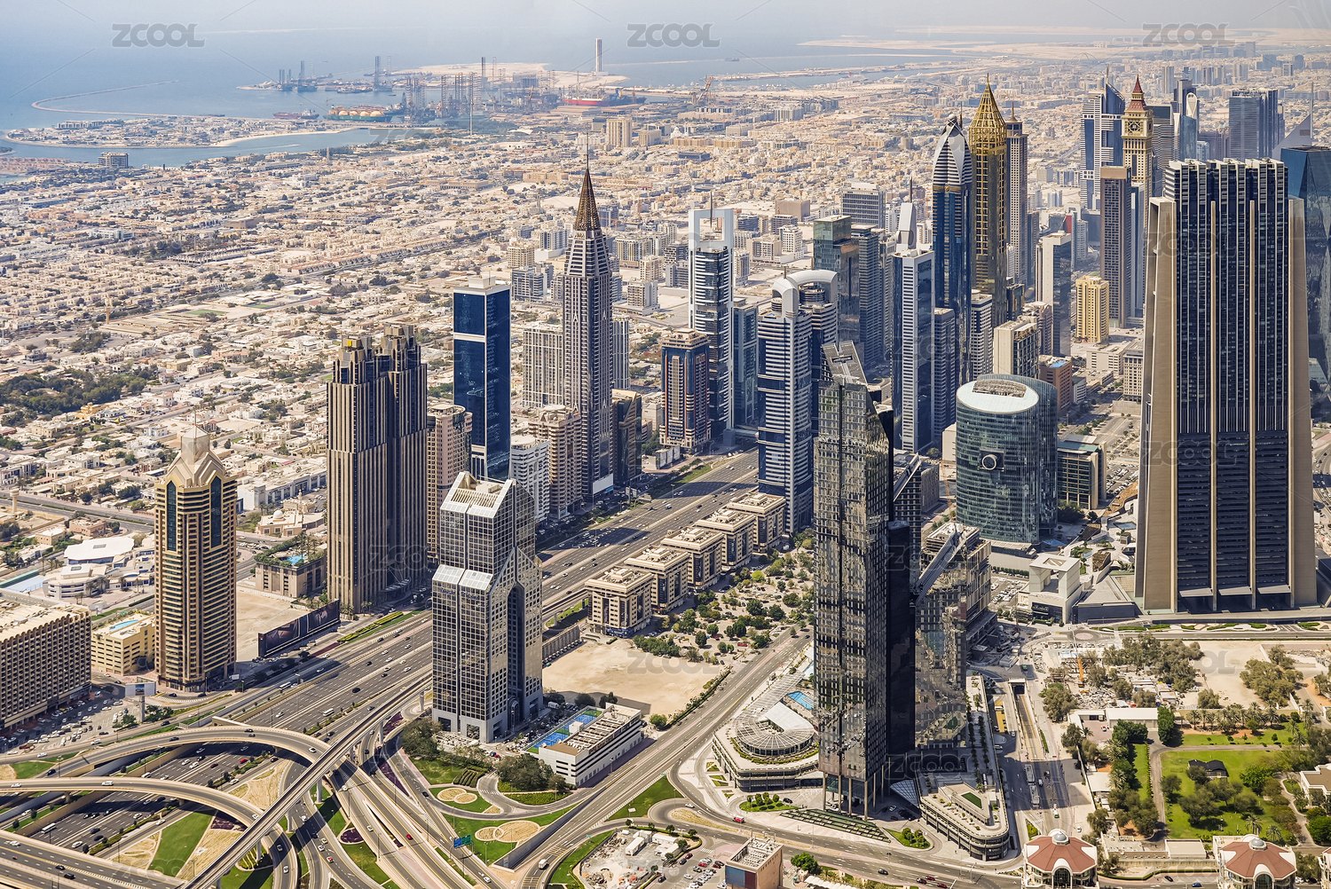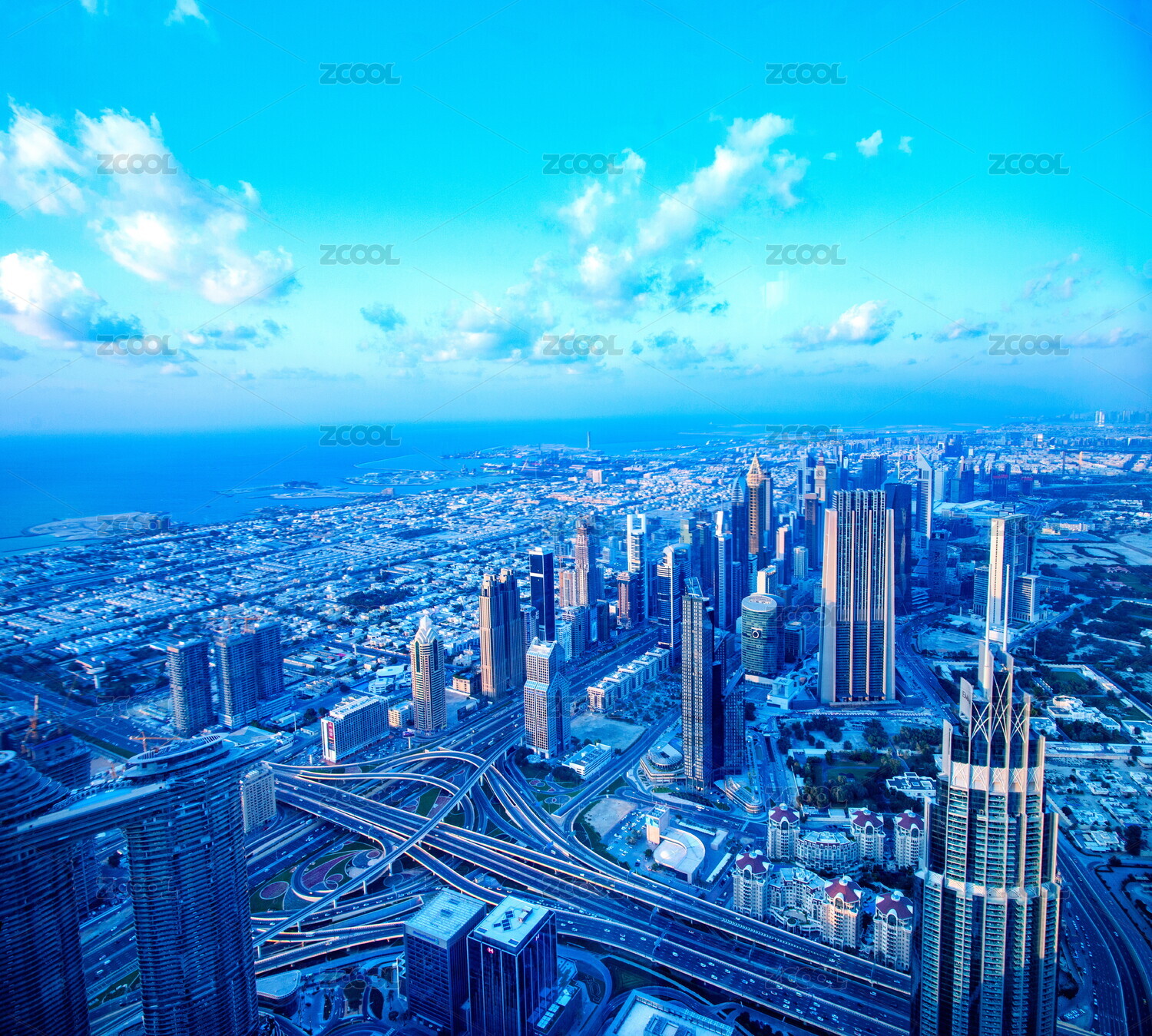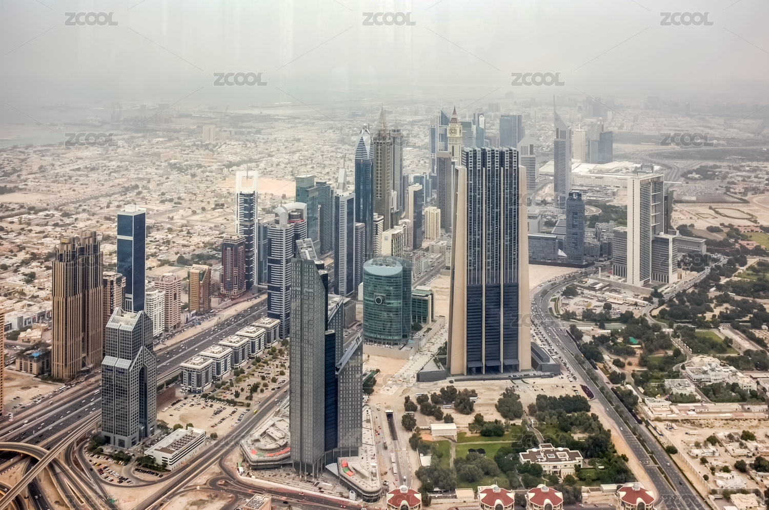 阿联酋国迪拜塔顶层俯瞰城市风光