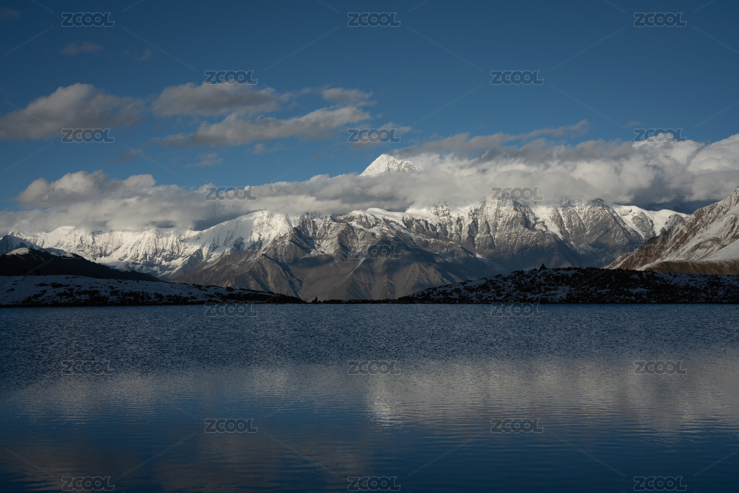 中国雄伟的雪山和湖面上的倒影