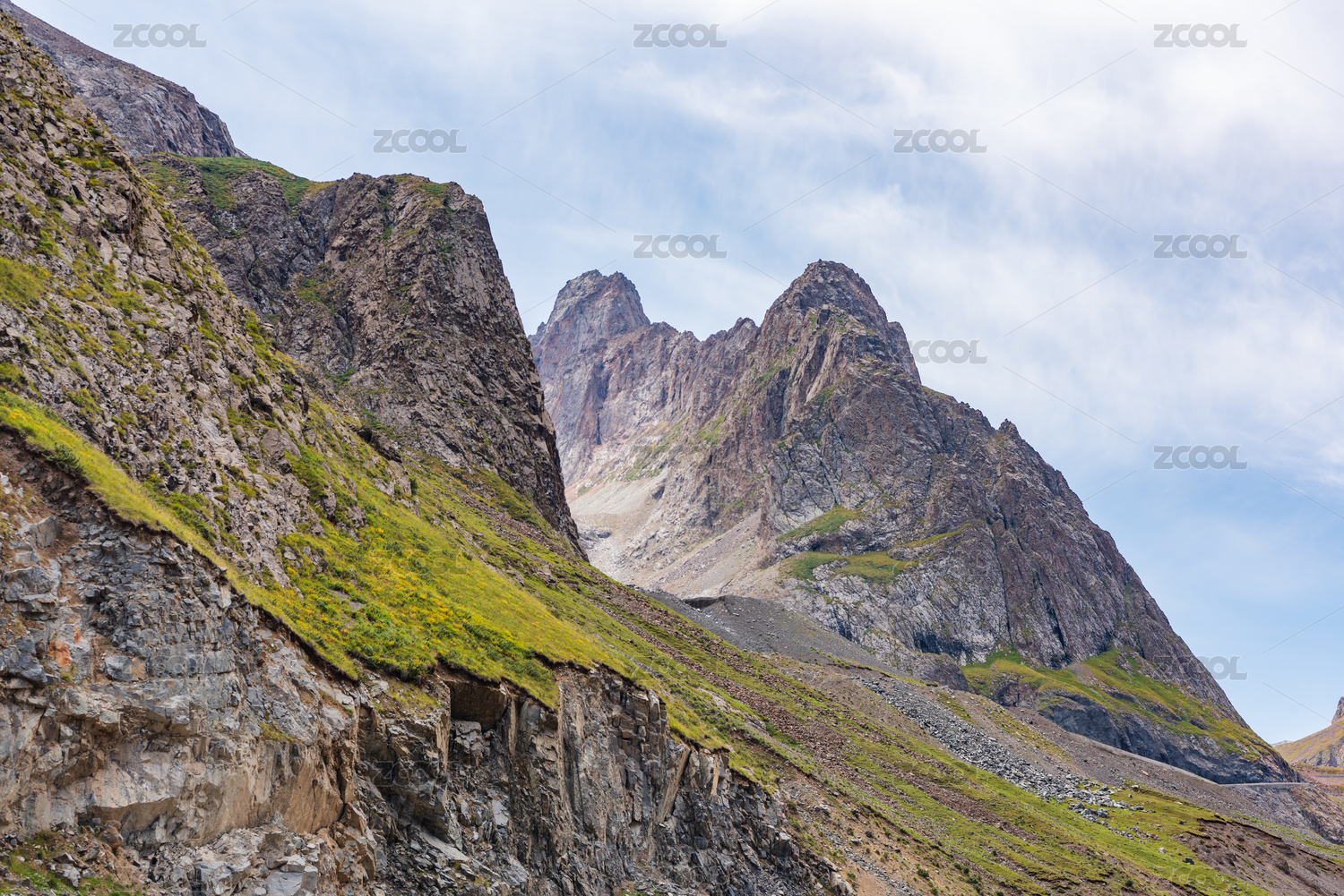 中国新疆伊犁独库公路沿线云雾缭绕高山风景