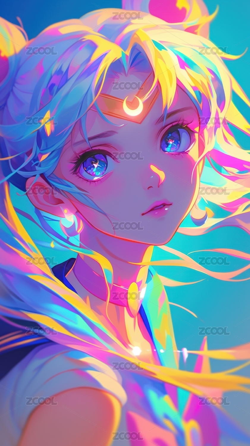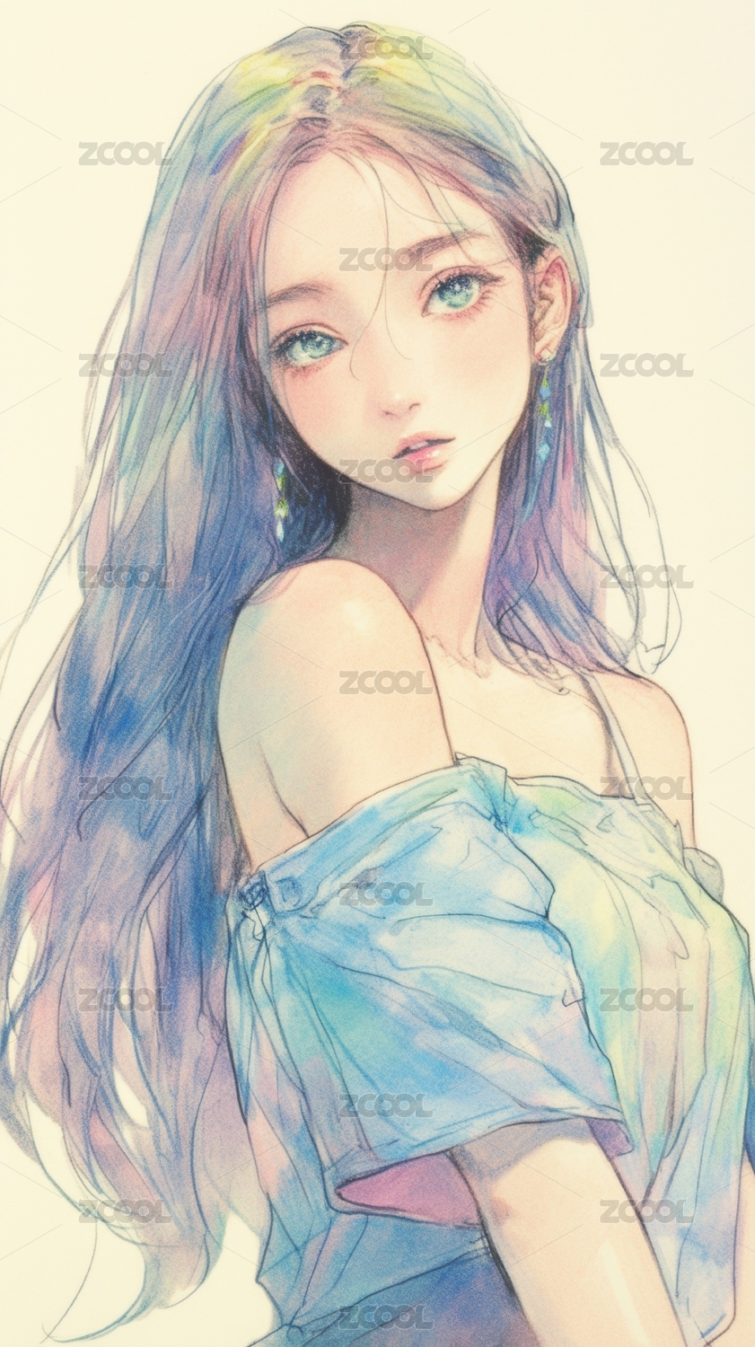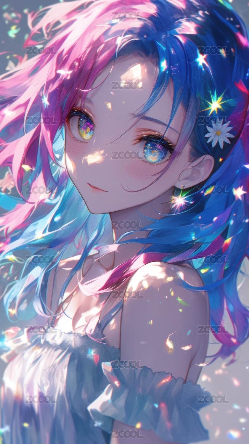 蓝发,爱豆,长发,开心,竖构图,美女,女孩,女生,近景