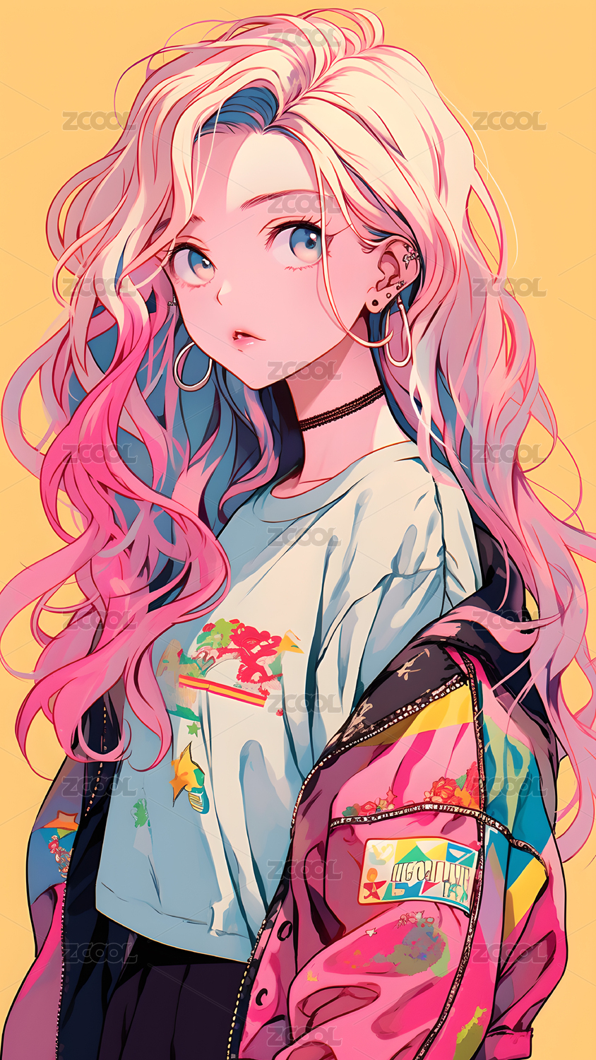 复古90年代漂亮可爱女孩时尚单人纯色背景
