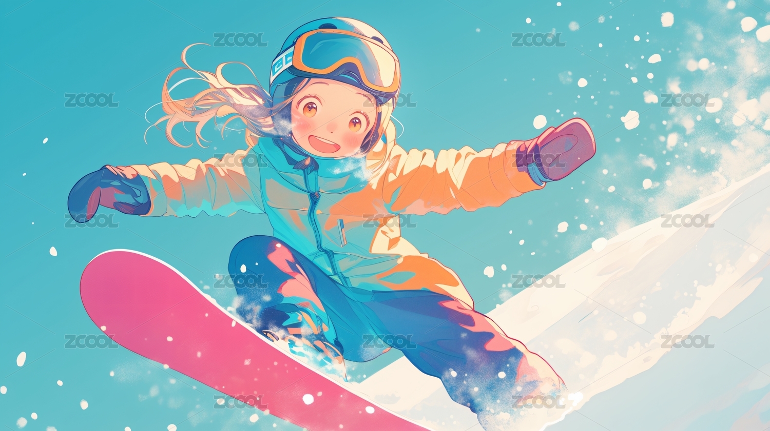 滑雪运动新海诚日漫风格插画