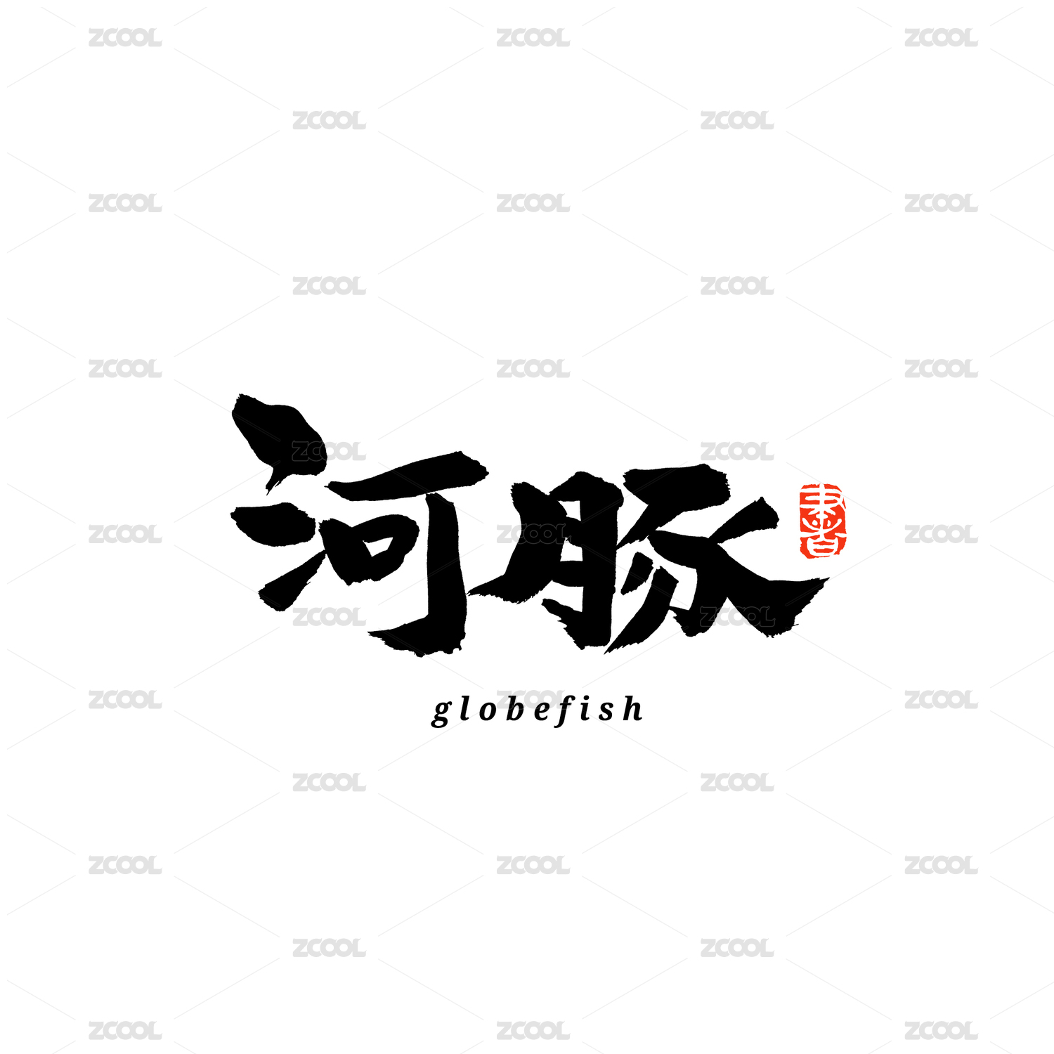 河豚手写书法字体字形中国风