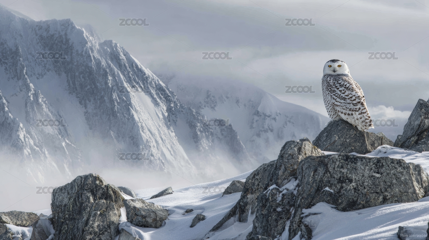 一只对镜头眨眼的可爱雪鸮全身肖像照