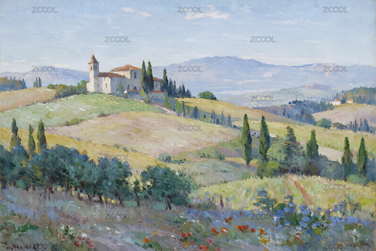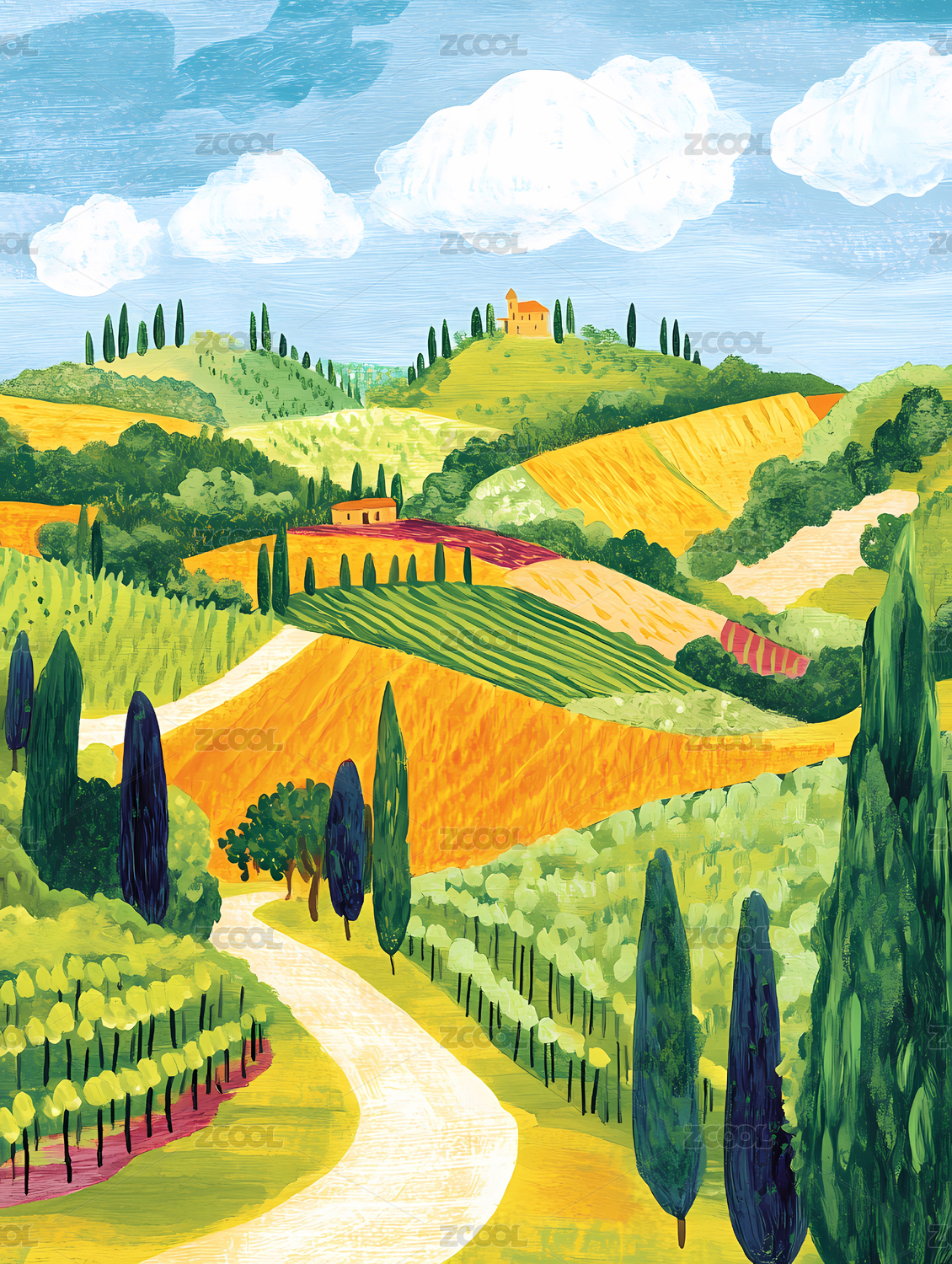 自然,小路,绘画,山丘,山脉,风景,艺术,天空,云,田野
