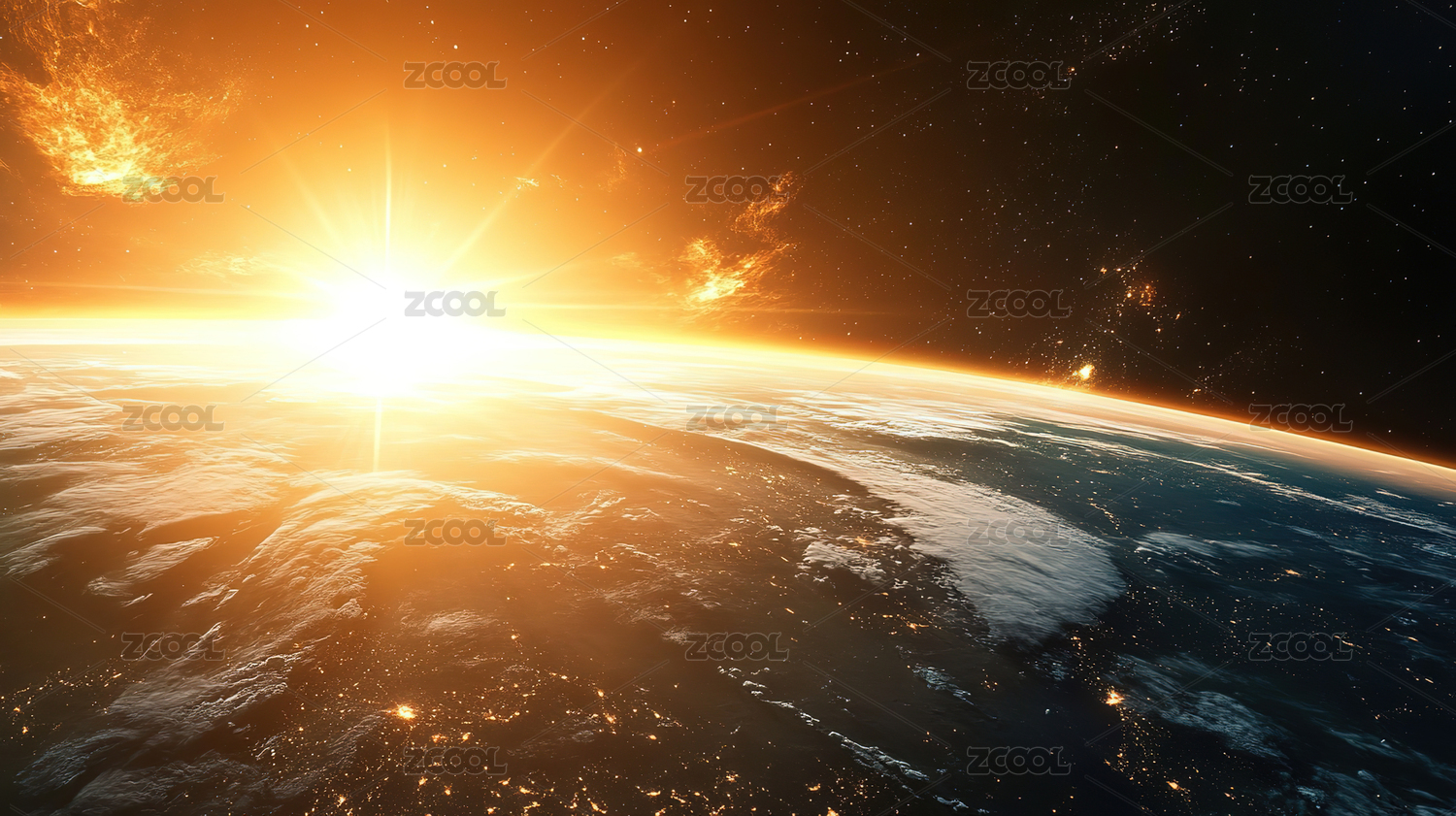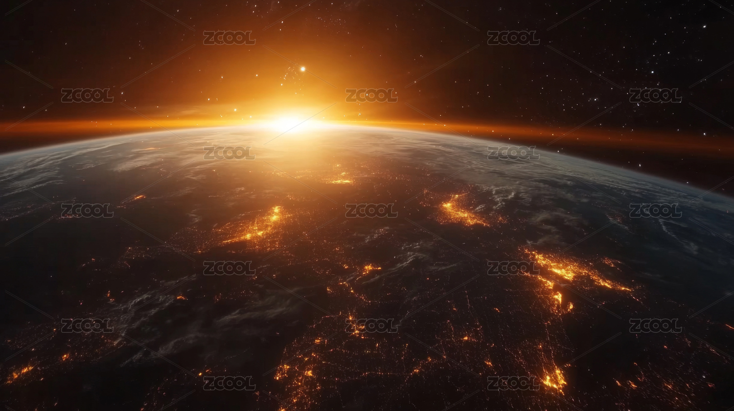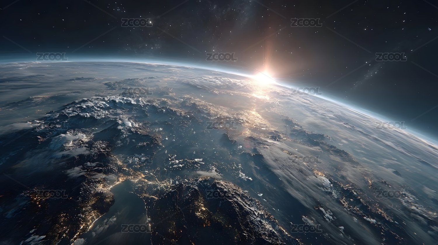 宇宙,太空,蓝色,星球,俯瞰,日出,太阳,恒星,阳光,发光