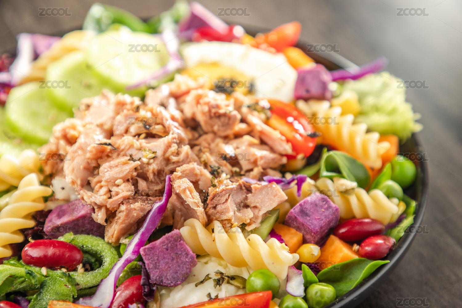一盘金枪鱼蔬菜沙拉西餐菜品特写