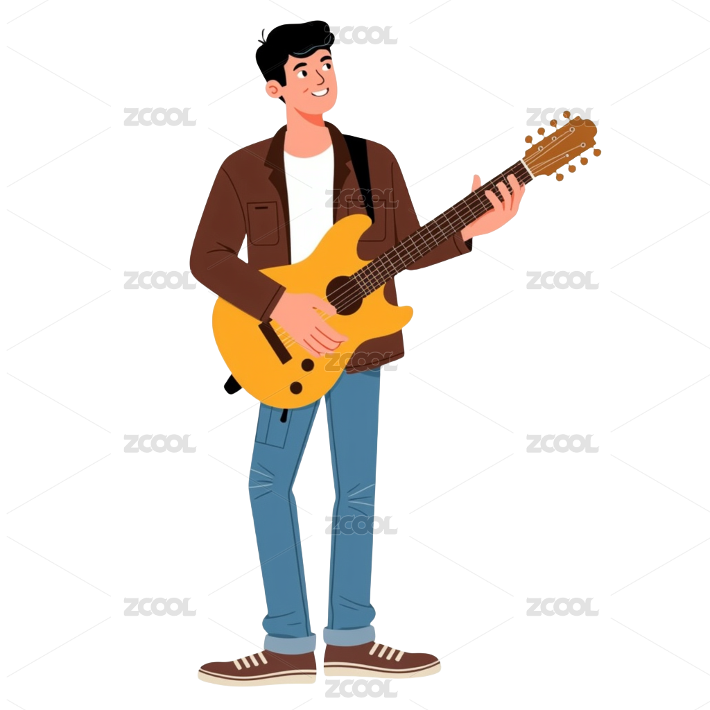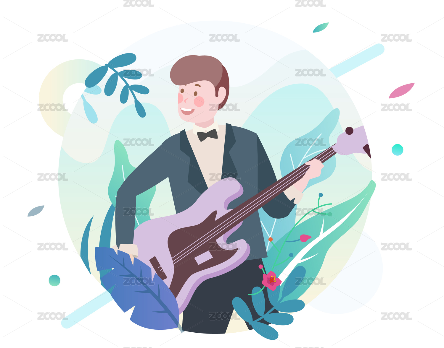 扁平人物素材音乐节背着贝斯的主唱男孩