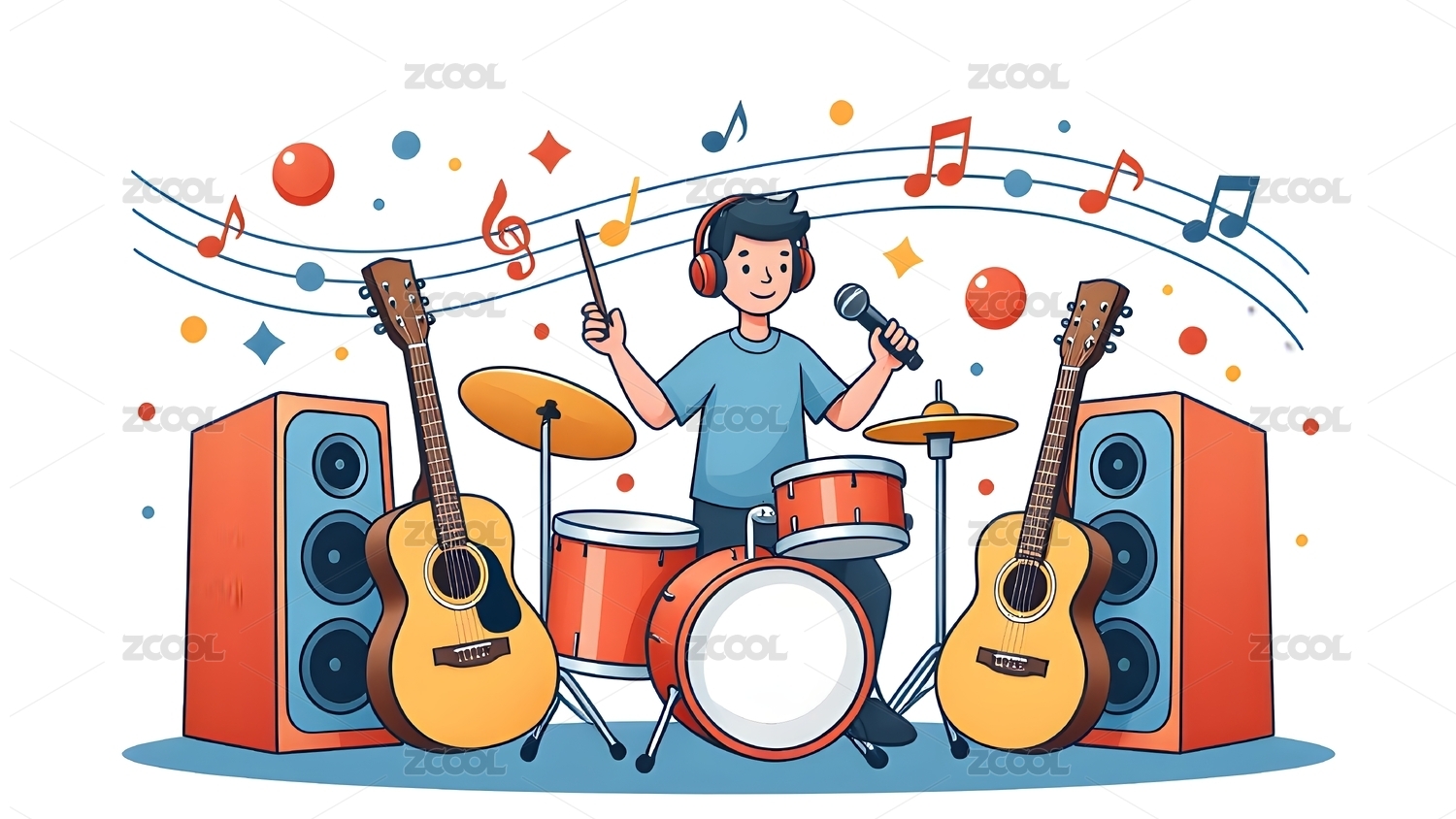 扁平人物,卡通,人物,乐队,音乐节,小提琴,礼服,架子鼓,爵士乐,卡拉ok
