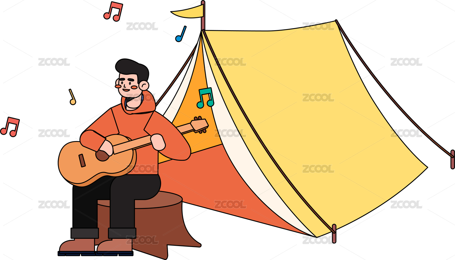 一群青年在草地弹奏音乐唱歌跳舞插画