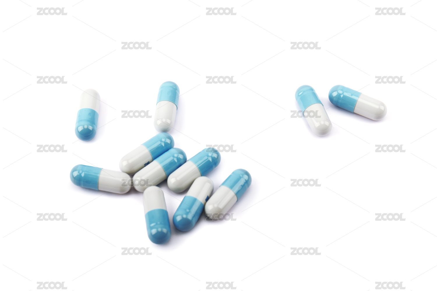 胶囊掉落白色背景瞬间高速抓拍
