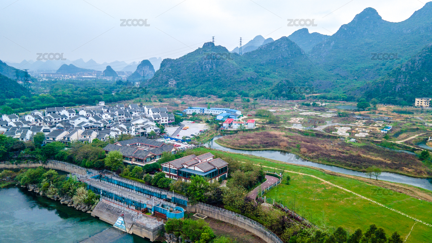 中国广西桂林荔浦荔江湿地公园沿江景观