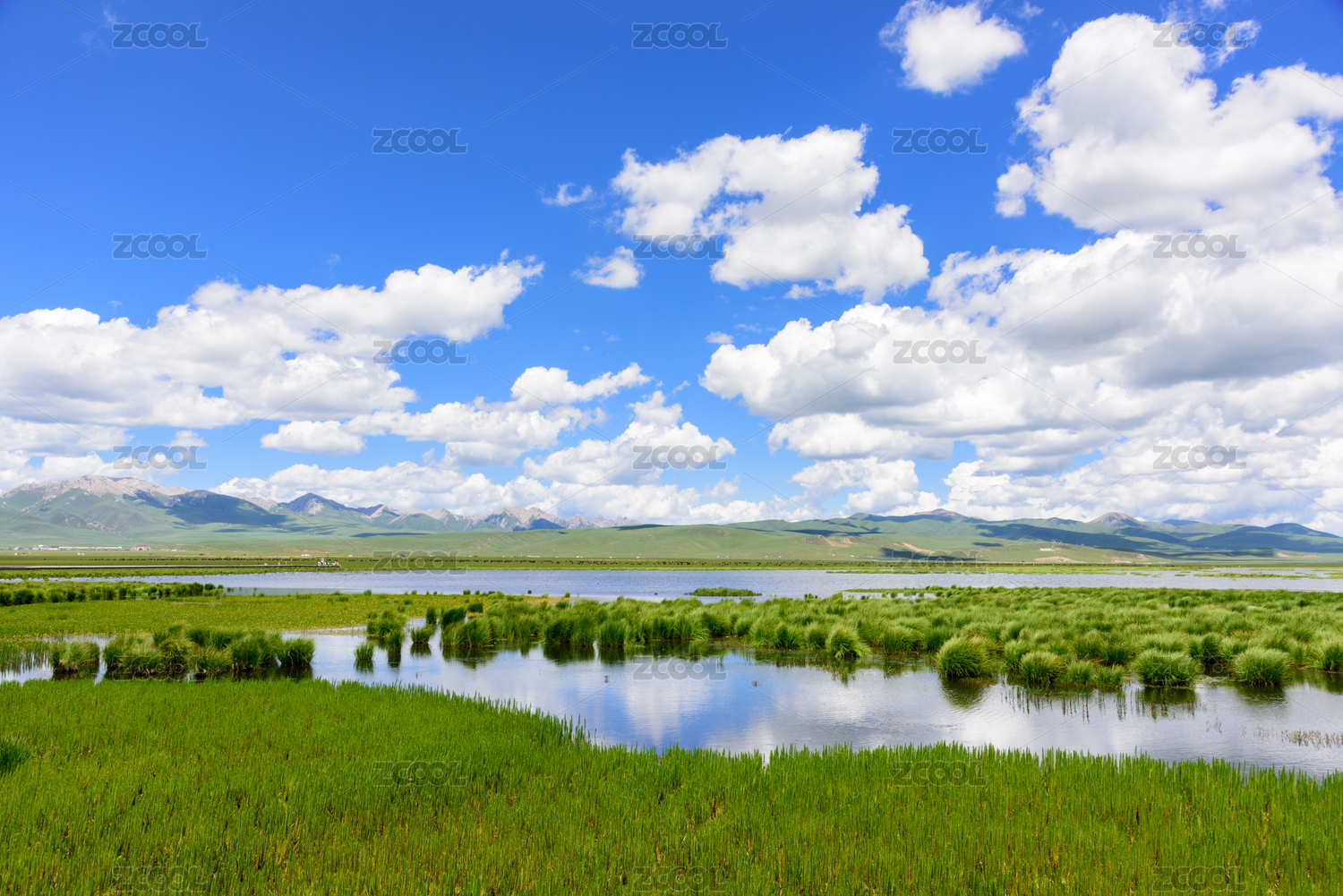 中国四川阿坝若尔盖花湖生态区蓝天湿地一色